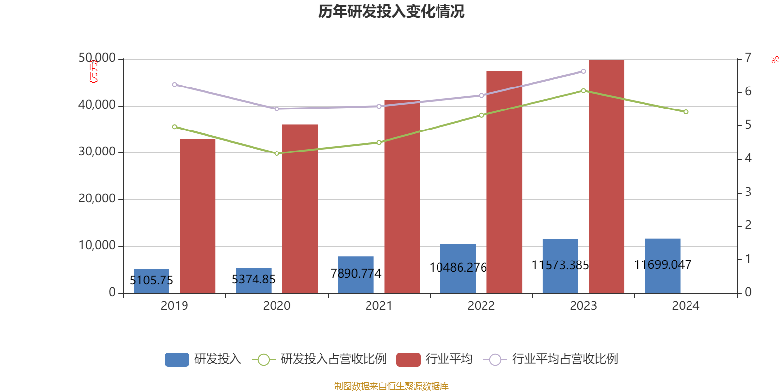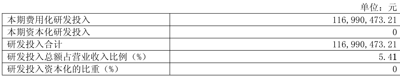 2024年全年,公司研发投入金额为1.17亿元,同比增长1.09%;研发投入占营业收入比例为5.41%,相比上年同期下降0.63个百分点。此外,公司全年研发投入资本化率为0%。