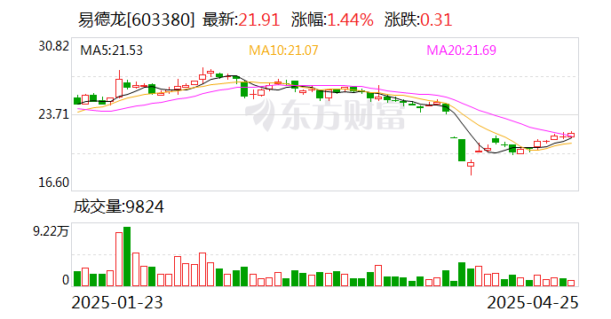 以4月25日收盘价计算,易德龙目前市盈率(TTM)约为19.09倍,市净率(LF)约2.33倍,市销率(TTM)约1.63倍。