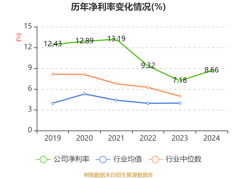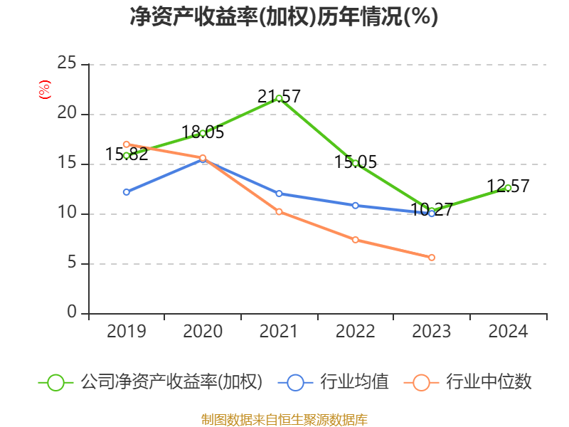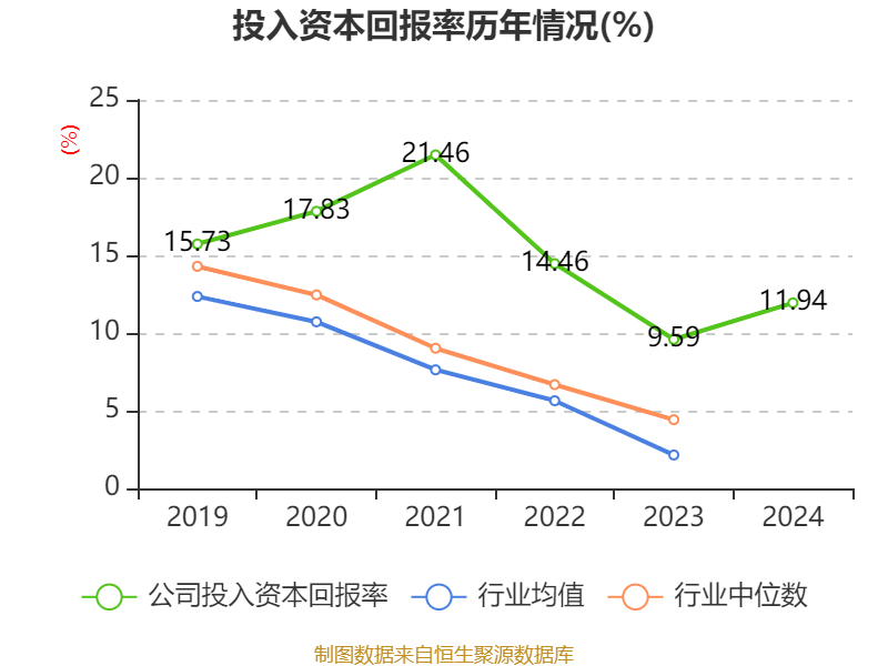 数据显示,2024年公司加权平均净资产收益率为12.57%,较上年同期上升2.3个百分点。公司2024年投入资本回报率为11.94%,较上年同期上升2.35个百分点。