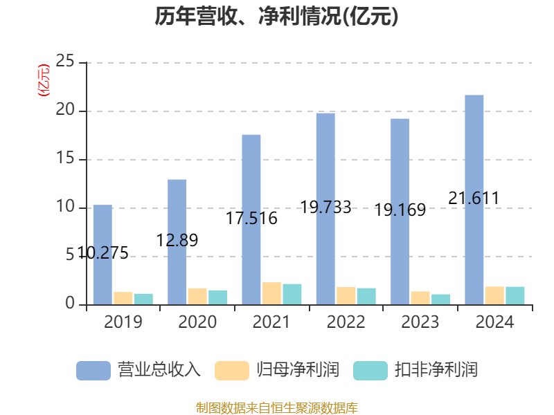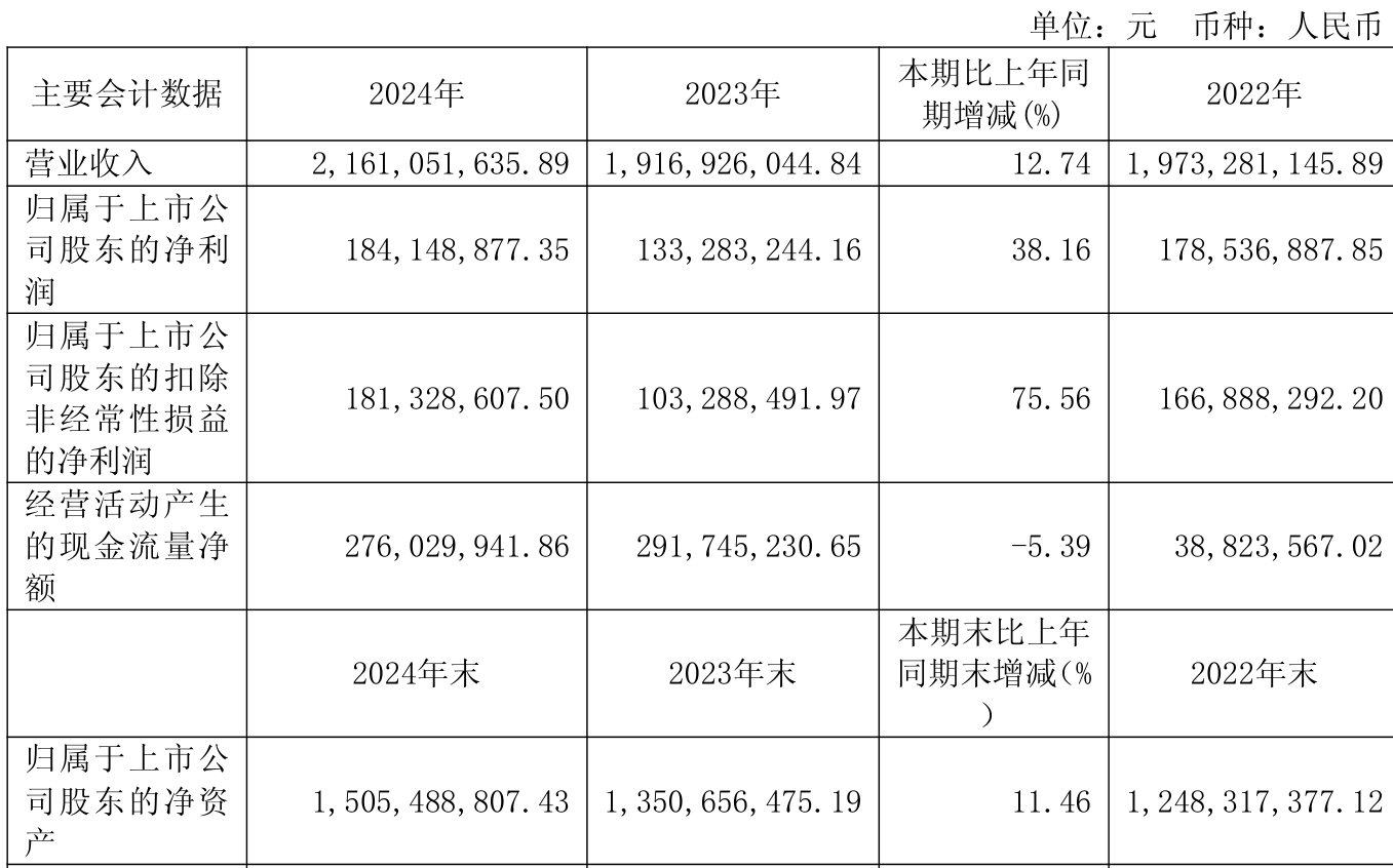 中证智能财讯易德龙(603380)4月26日披露2024年年度报告。2024年,公司实现营业总收入21.61亿元,同比增长12.74%;归母净利润1.84亿元,同比增长38.16%;扣非净利润1.81亿元,同比增长75.56%;经营活动产生的现金流量净额为2.76亿元,同比下降5.39%;报告期内,易德龙基本每股收益为1.15元,加权平均净资产收益率为12.57%。公司2024年度分配预案为:拟向全体股东每10股派现10元(含税)。