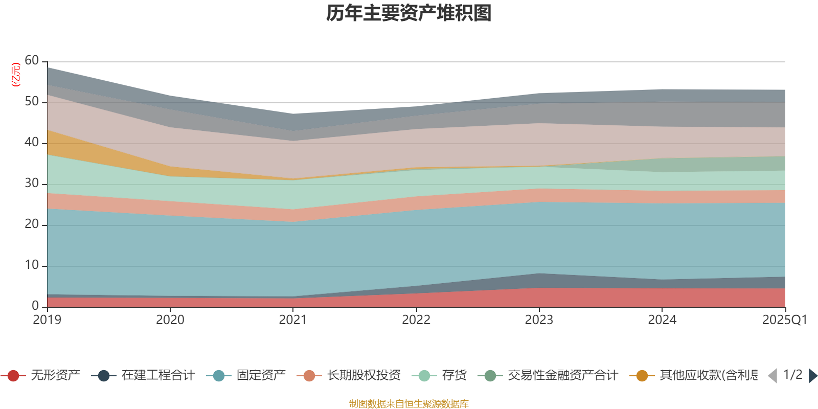 资产重大变化方面,截至2025年一季度末,公司在建工程合计较上年末增加32.42%,占公司总资产比重上升1.34个百分点;应收票据及应收账款较上年末减少8.54%,占公司总资产比重下降1.2个百分点;固定资产较上年末减少2.94%,占公司总资产比重下降0.95个百分点;存货较上年末增加4.32%,占公司总资产比重上升0.4个百分点。