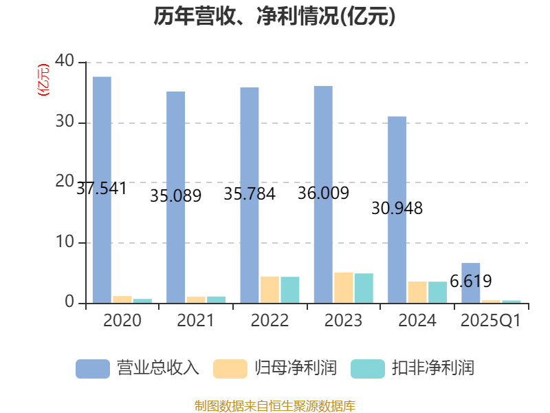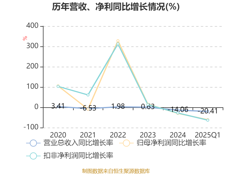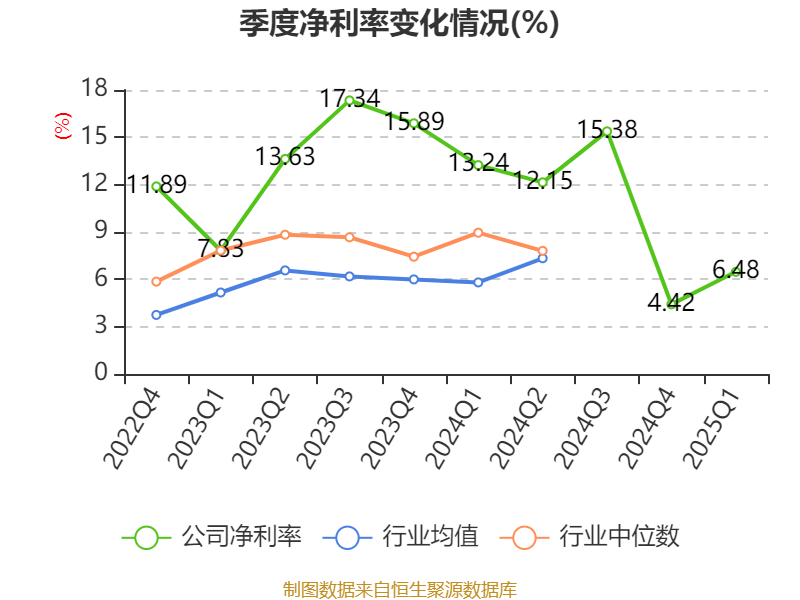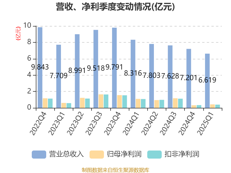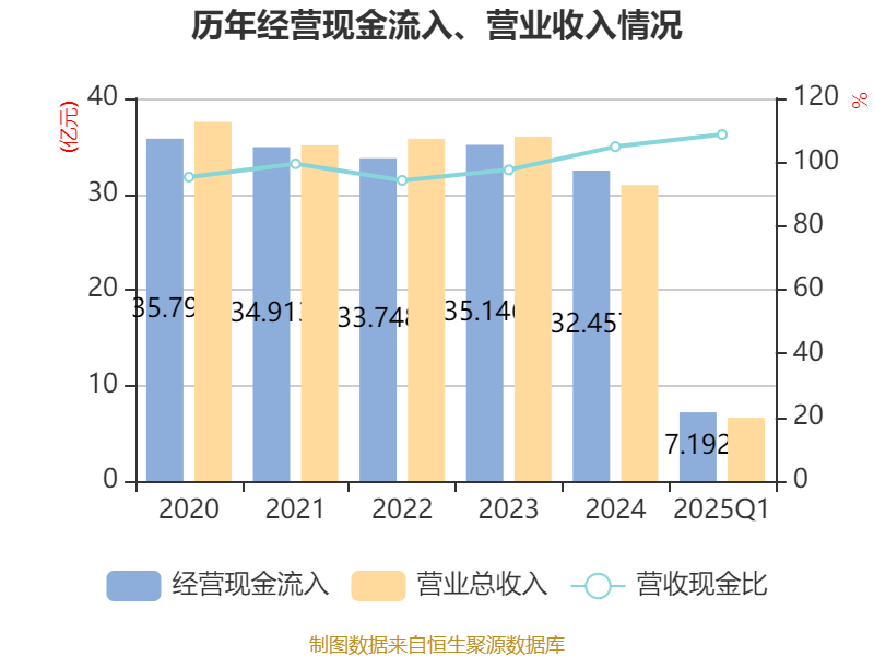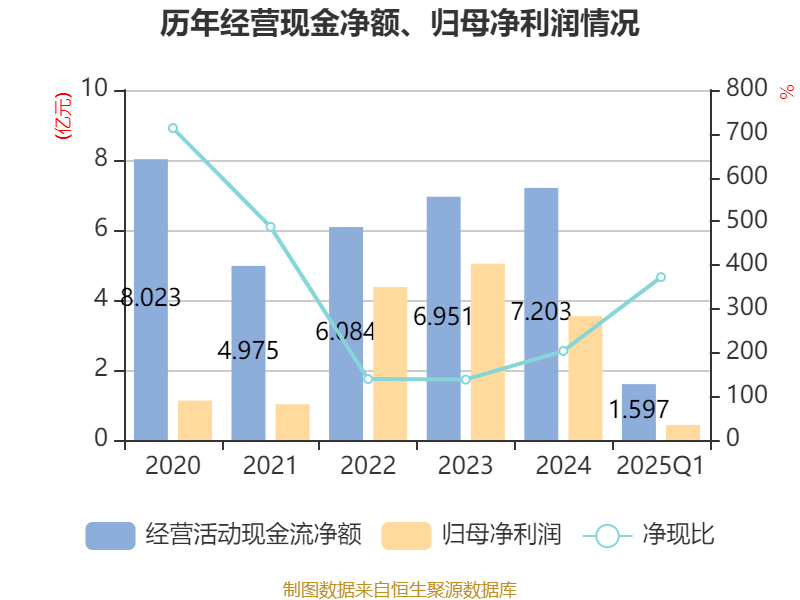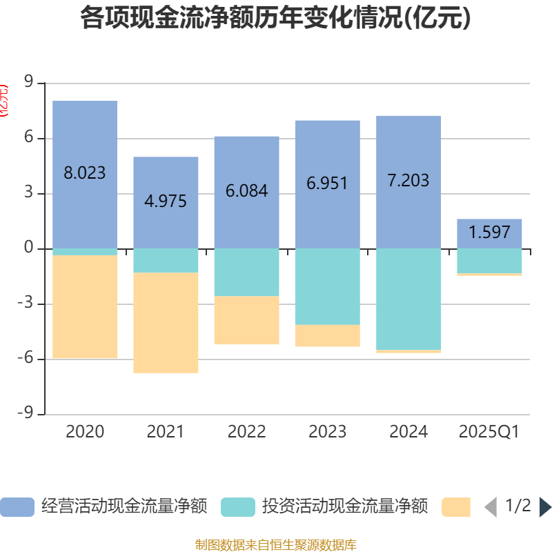 截至2025年一季度末,公司经营活动现金流净额为1.6亿元,同比下降10.04%;筹资活动现金流净额-1330.06万元,同比增加6430.53万元;投资活动现金流净额-1.36亿元,上年同期为-7758.23万元。