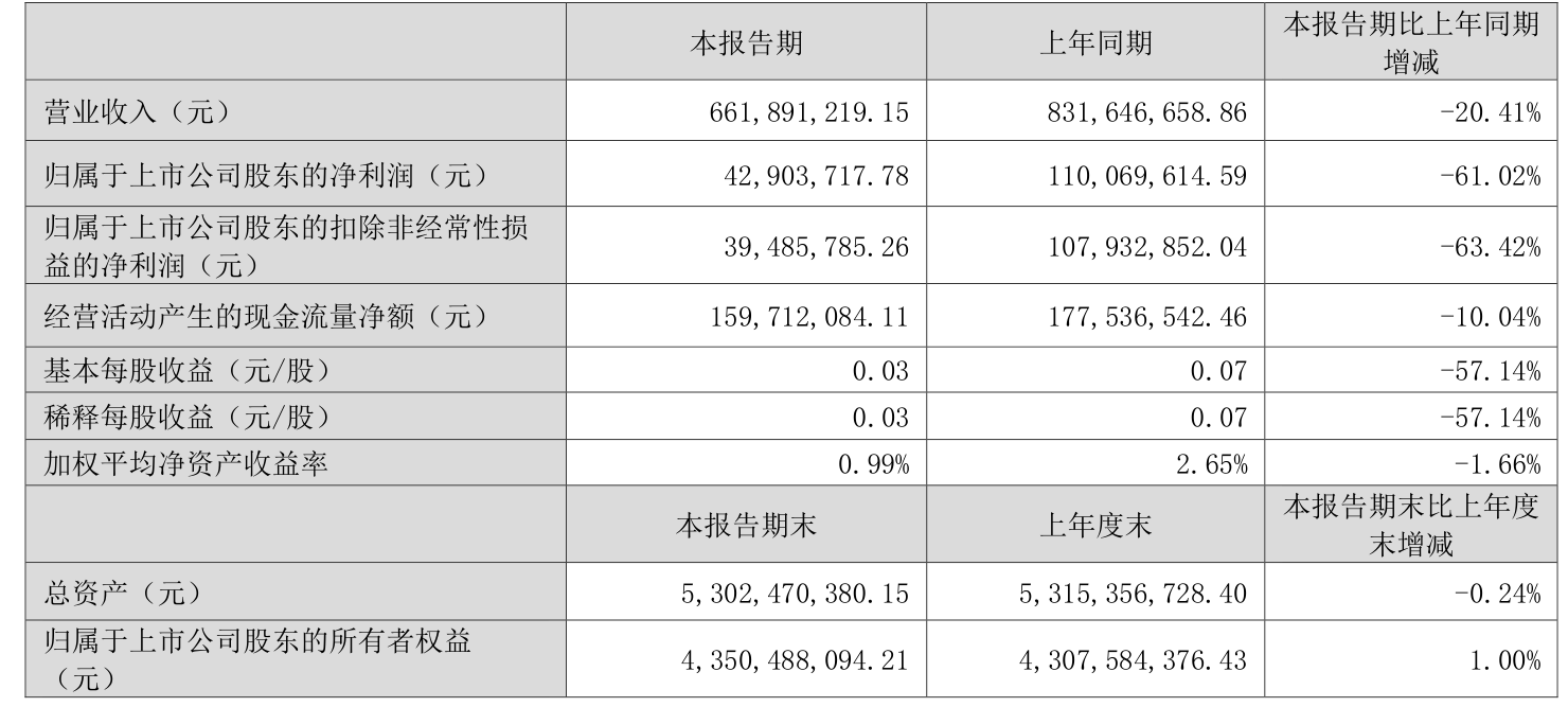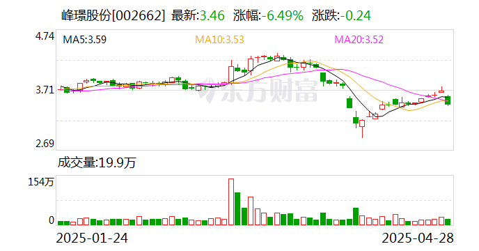中证智能财讯峰璟股份(002662)4月28日披露2025年第一季度报告。公司实现营业总收入6.62亿元,同比下降20.41%;归母净利润4290.37万元,同比下降61.02%;扣非净利润3948.58万元,同比下降63.42%;经营活动产生的现金流量净额为1.6亿元,同比下降10.04%;报告期内,峰璟股份基本每股收益为0.03元,加权平均净资产收益率为0.99%。