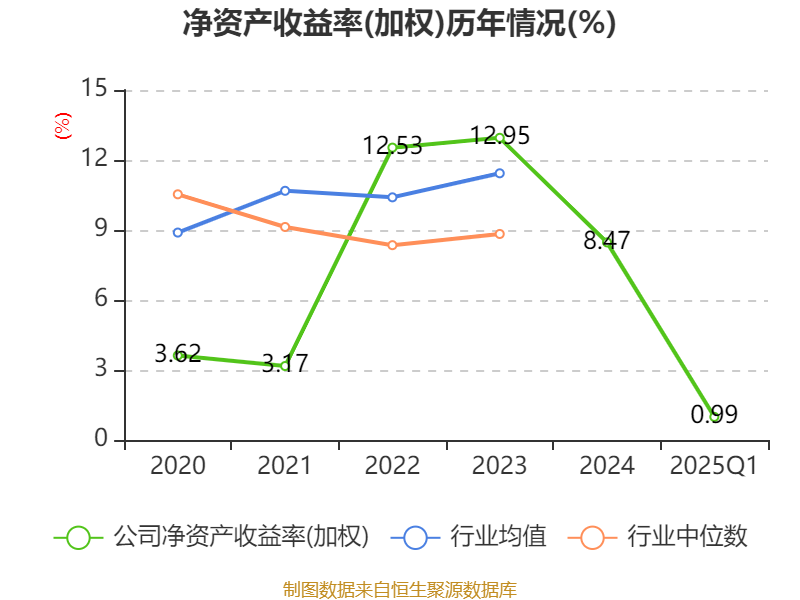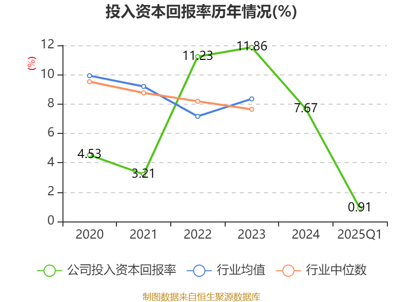 盈利能力方面, 2025年一季度公司加权平均净资产收益率为0.99%,同比下降1.66个百分点。公司2025年第一季度投入资本回报率为0.91%,较上年同期下降1.57个百分点。