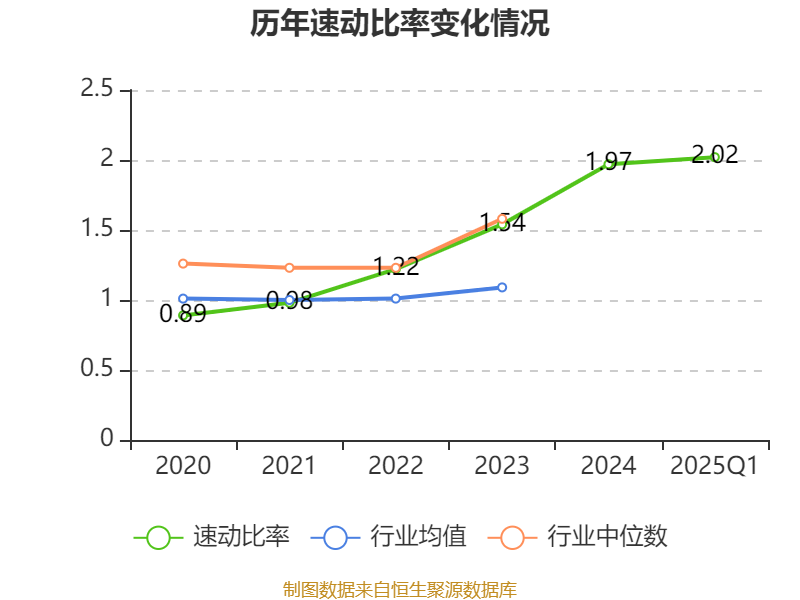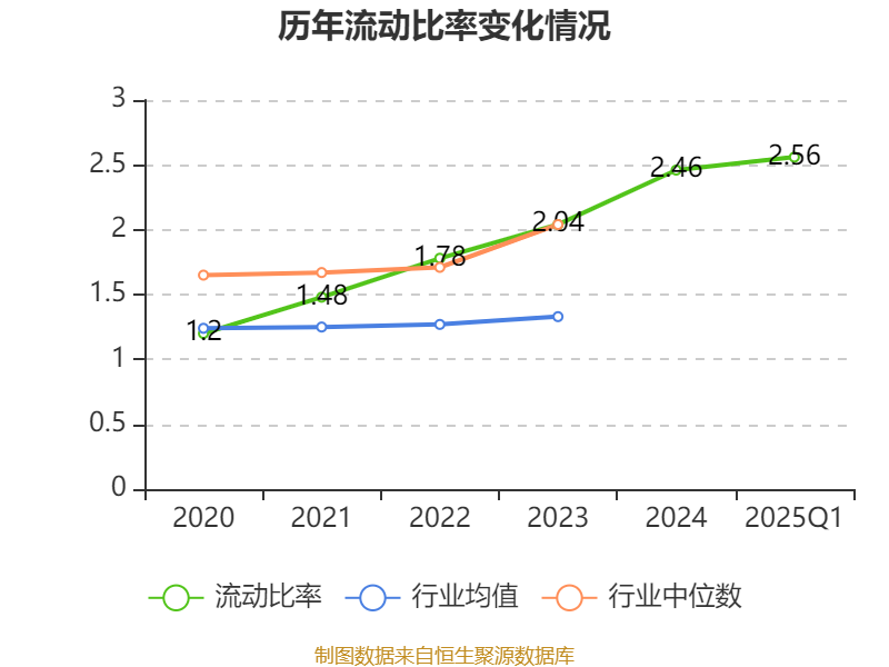 2025年第一季度,公司流动比率为2.56,速动比率为2.02。