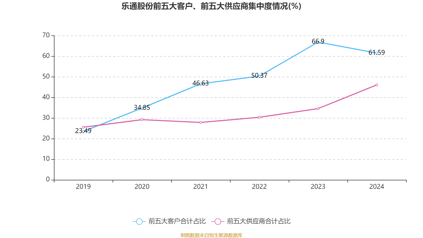 值得注意的是,中登公司数据显示,截至2025年4月25日,乐通股份27.98%股份处于质押状态。年报显示,第一大股东深圳市大晟资产管理有限公司质押4069万股公司股份,占其全部持股的78.25%;第二大股东深圳市优悦美晟企业管理有限公司质押663万股公司股份,占其全部持股的69.99%。