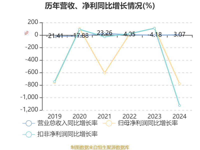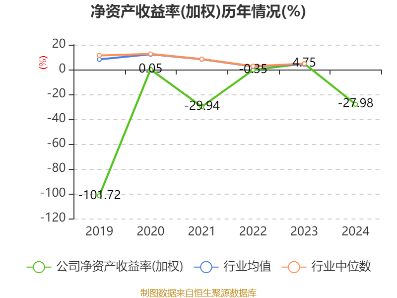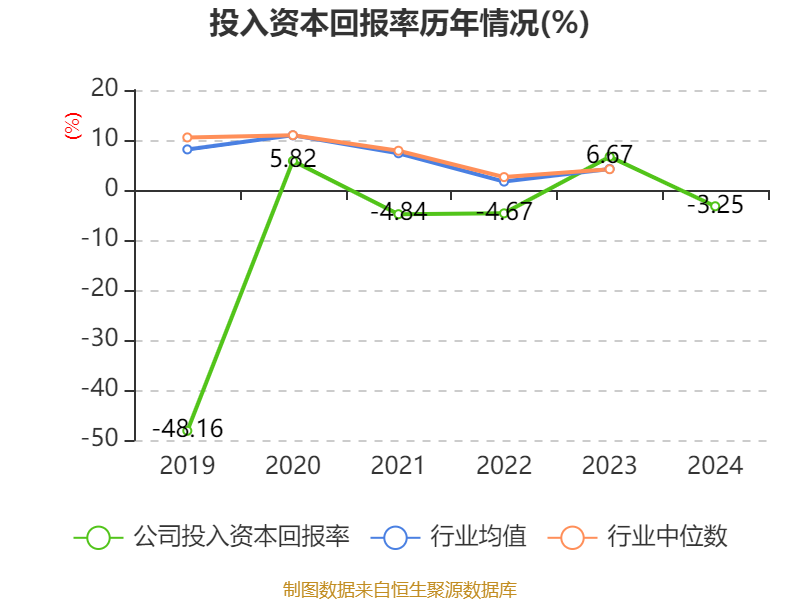 数据显示,2024年公司加权平均净资产收益率为-27.98%,较上年同期下降32.73个百分点。公司2024年投入资本回报率为-3.25%,较上年同期下降9.92个百分点。