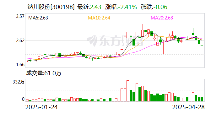4月28日,纳川股份(维权)(300198)公布2024年年报,公司营业收入为1.57亿元,同比下降60.3%;归母净利润自去年同期亏损3.06亿元变为亏损3.07亿元,亏损额进一步扩大;扣非归母净利润自去年同期亏损3.1亿元变为亏损2.65亿元,亏损额有所减少;经营现金流净额为7435万元,同比下降23.2%;EPS(全面摊薄)为-0.2978元。