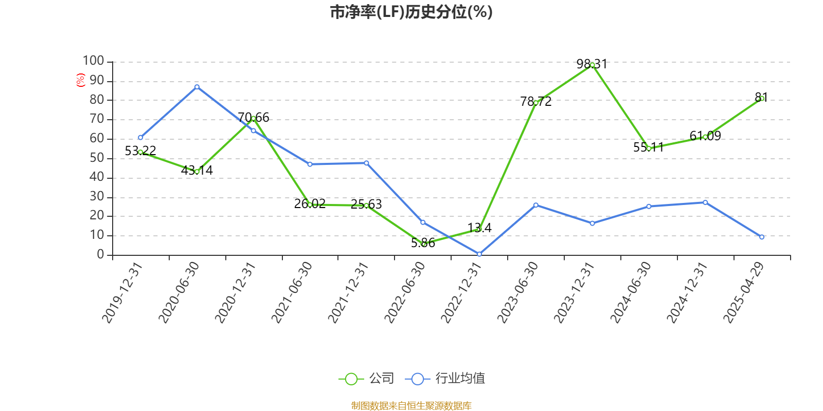 市盈率、市净率为负时,不显示当期分位数,会导致折线图中断。