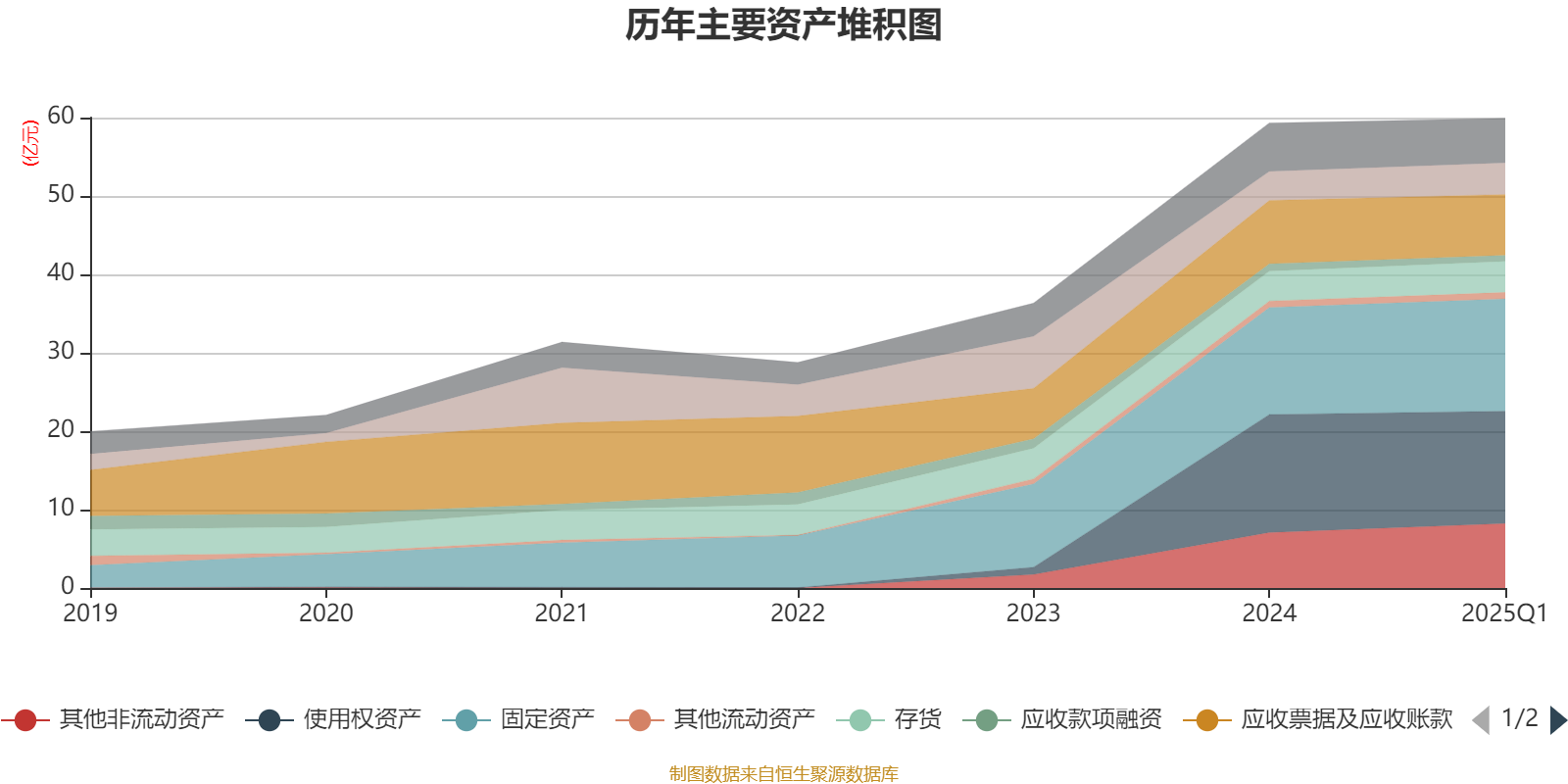 资产重大变化方面,截至2025年一季度末,公司其他非流动资产较上年末增加16.26%,占公司总资产比重上升1.8个百分点;使用权资产较上年末减少4.82%,占公司总资产比重下降1.47个百分点;固定资产较上年末增加5.01%,占公司总资产比重上升0.91个百分点;应收票据及应收账款较上年末减少4.12%,占公司总资产比重下降0.69个百分点。