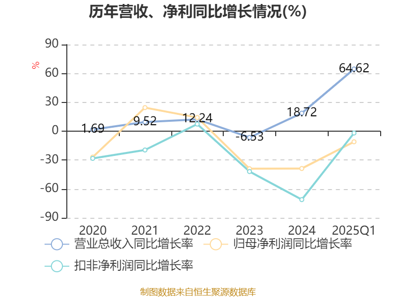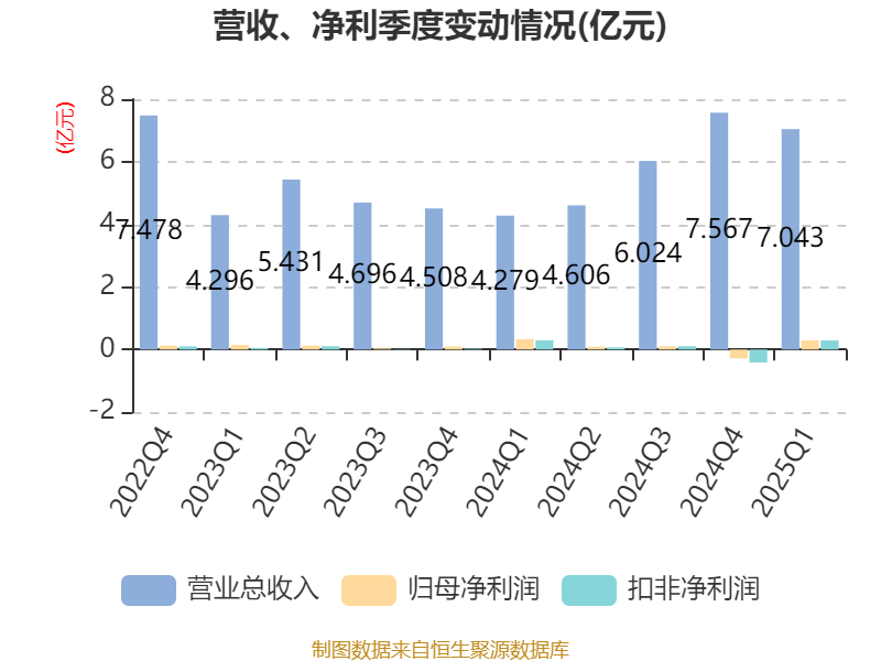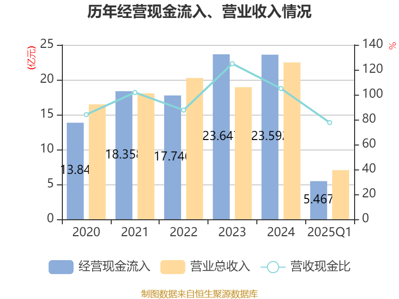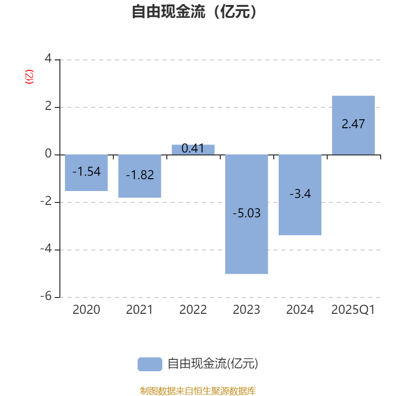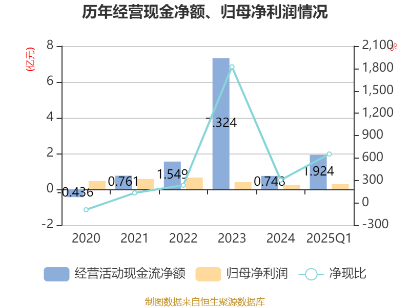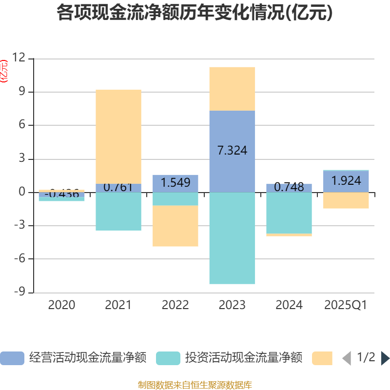 截至2025年一季度末,公司经营活动现金流净额为1.92亿元,同比下降62.79%;筹资活动现金流净额-1.46亿元,同比减少3.73亿元;投资活动现金流净额675.88万元,上年同期为-5675.55万元。