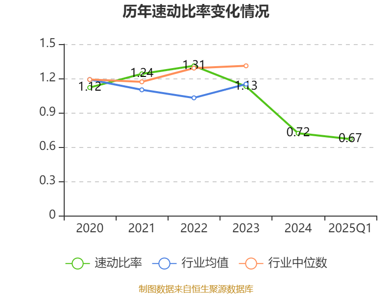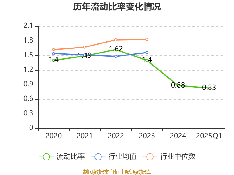 2025年第一季度,公司流动比率为0.83,速动比率为0.67。