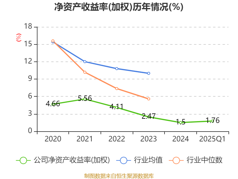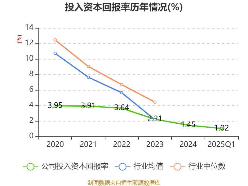 盈利能力方面, 2025年一季度公司加权平均净资产收益率为1.76%,同比下降0.23个百分点。公司2025年第一季度投入资本回报率为1.02%,较上年同期下降0.51个百分点。