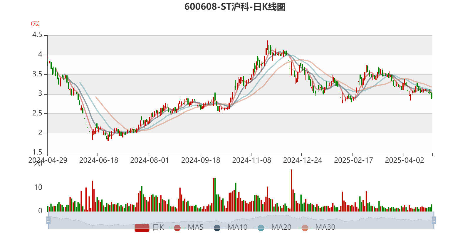 以4月28日收盘价计算,ST沪科目前市盈率(TTM)约为-164.55倍,市净率(LF)约24.9倍,市销率(TTM)约62.06倍。