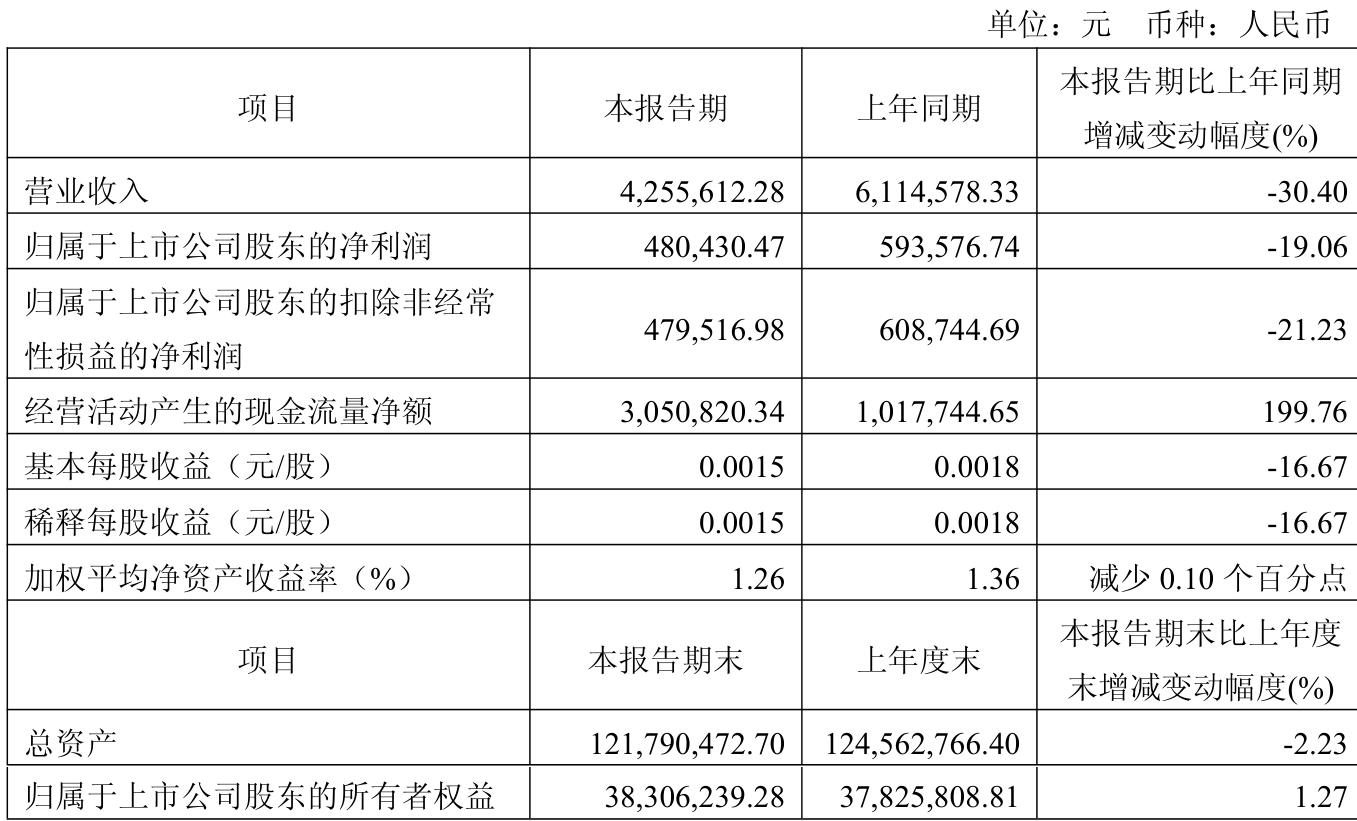 中证智能财讯*ST沪科(600608)4月29日披露2025年第一季度报告。公司实现营业总收入425.56万元,同比下降30.40%;归母净利润48.04万元,同比下降19.06%;扣非净利润47.95万元,同比下降21.23%;经营活动产生的现金流量净额为305.08万元,同比增长199.76%;报告期内,ST沪科基本每股收益为0.0015元,加权平均净资产收益率为1.26%。