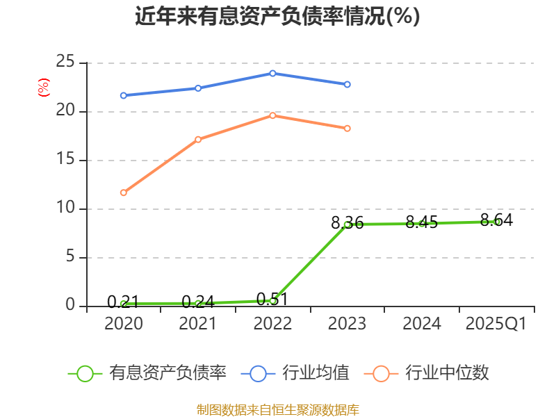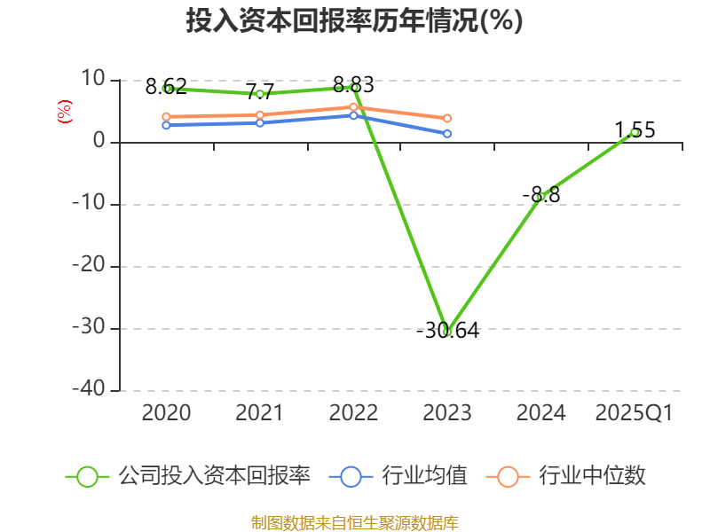 盈利能力方面, 2025年一季度公司加权平均净资产收益率为1.26%,同比下降0.1个百分点。公司2025年第一季度投入资本回报率为1.55%,较上年同期上升0.27个百分点。