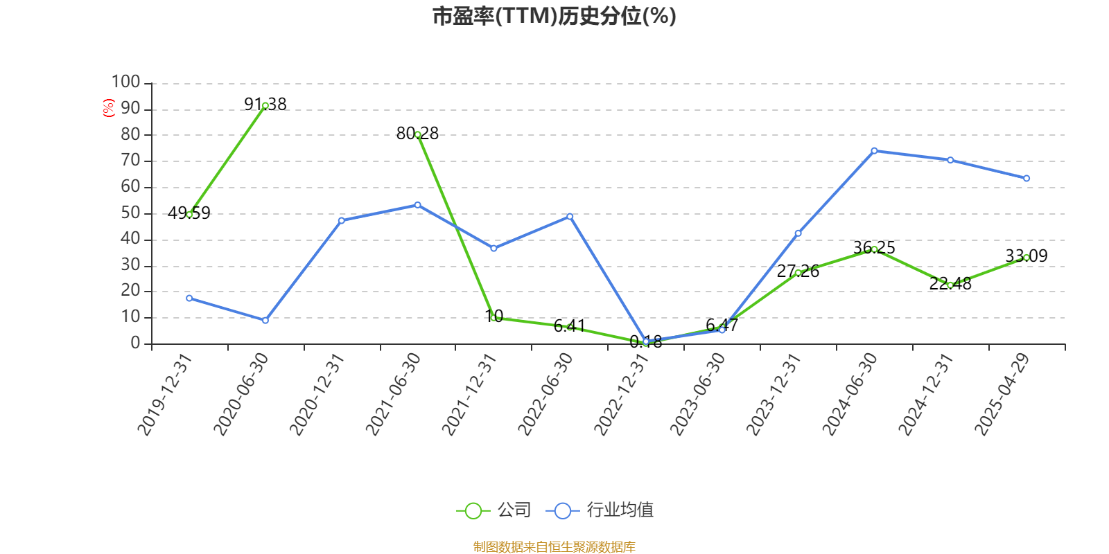 市盈率、市净率为负时,不显示当期分位数,会导致折线图中断。
