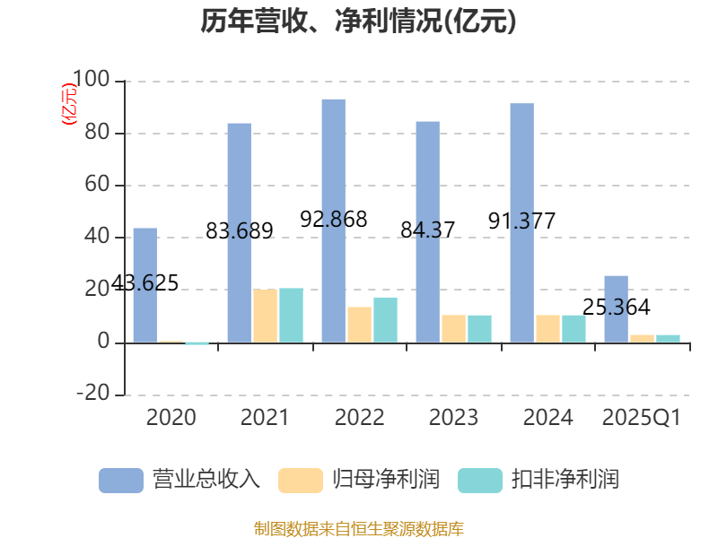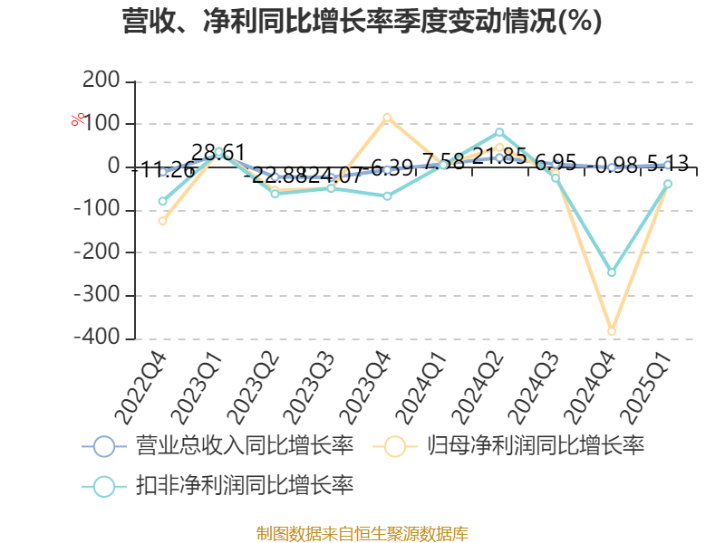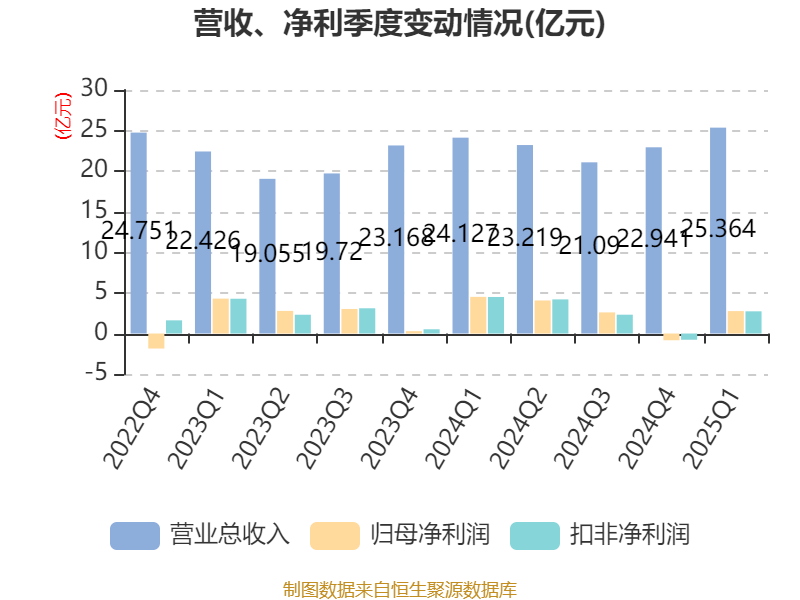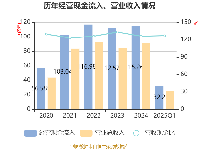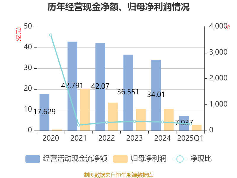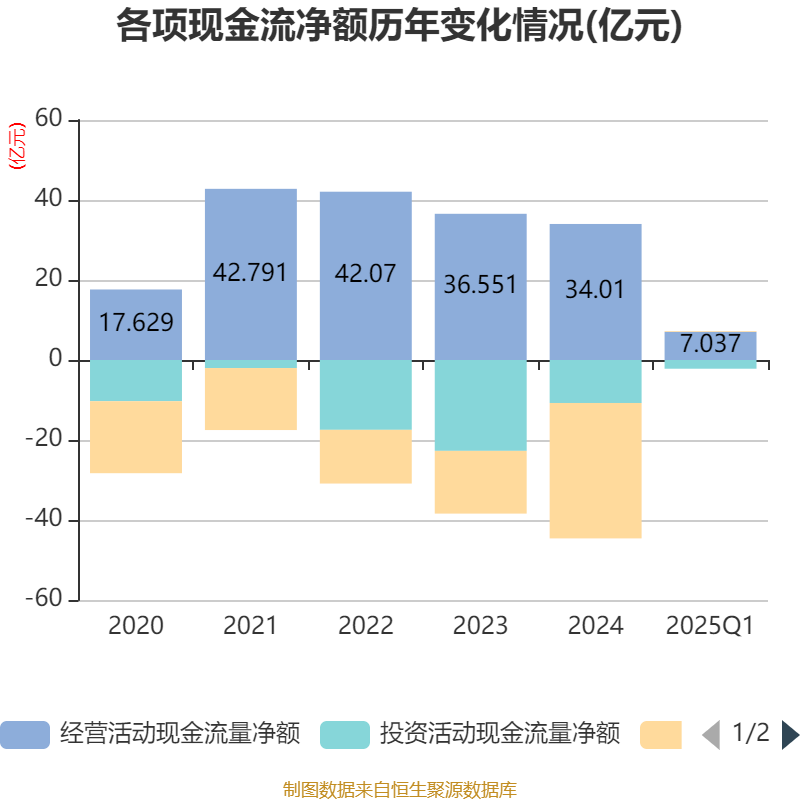 截至2025年一季度末,公司经营活动现金流净额为7.04亿元,同比下降46.15%;筹资活动现金流净额1810.81万元,同比增加12.54亿元;投资活动现金流净额-2.18亿元,上年同期为-3.87亿元。