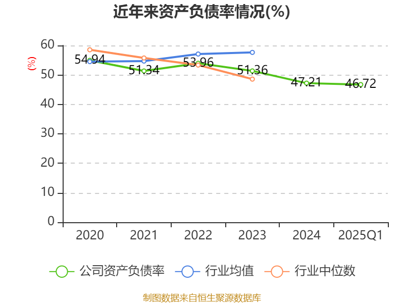 负债重大变化方面,截至2025年一季度末,公司一年内到期的非流动负债较上年末减少14.02%,占公司总资产比重下降0.43个百分点;其他应付款(含利息和股利)较上年末减少9.92%,占公司总资产比重下降0.32个百分点;应付票据及应付账款较上年末减少1.39%,占公司总资产比重下降0.23个百分点;合同负债较上年末增加18.83%,占公司总资产比重上升0.23个百分点。