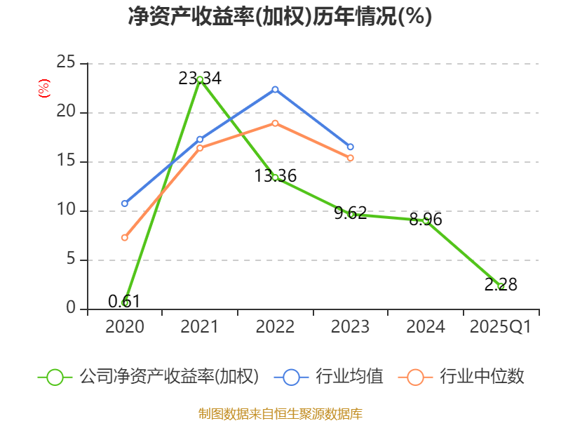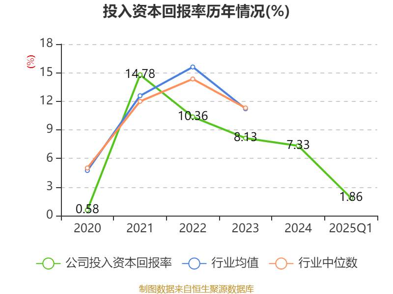 盈利能力方面, 2025年一季度公司加权平均净资产收益率为2.28%,同比下降1.66个百分点。公司2025年第一季度投入资本回报率为1.86%,较上年同期下降1.12个百分点。