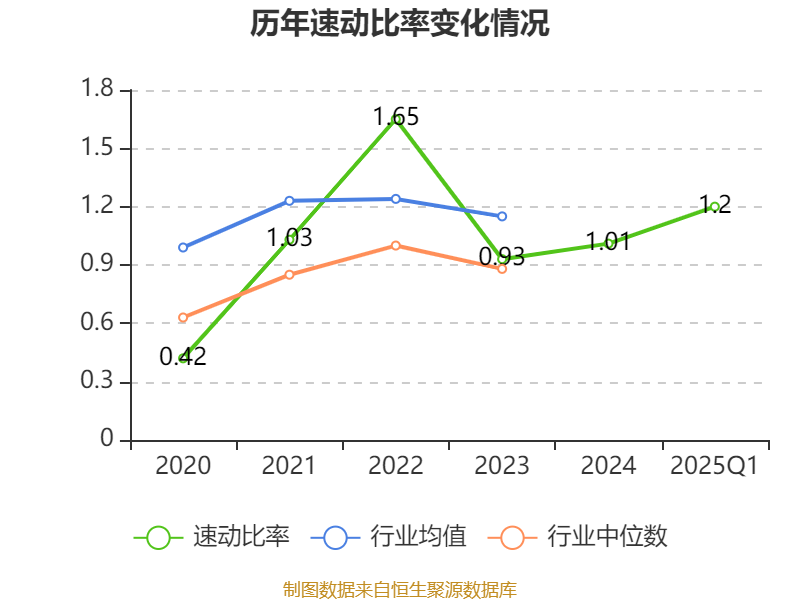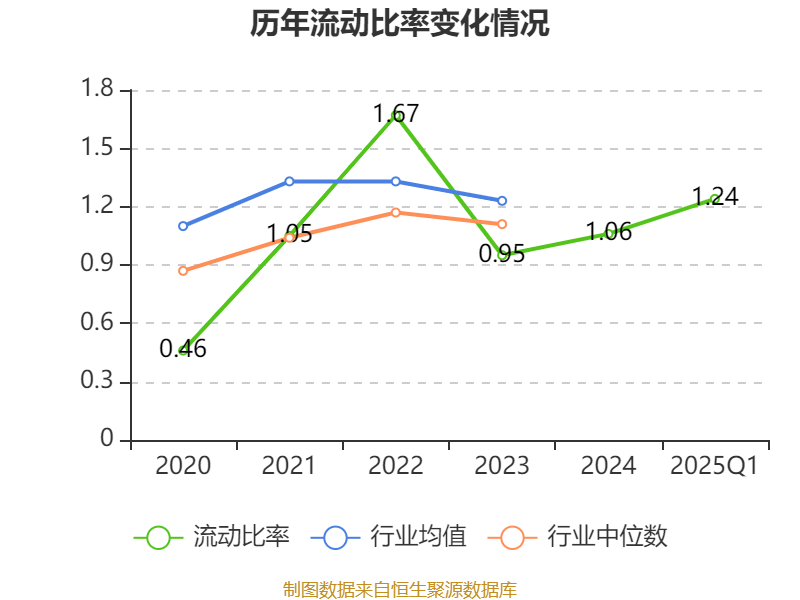 2025年第一季度,公司流动比率为1.24,速动比率为1.2。