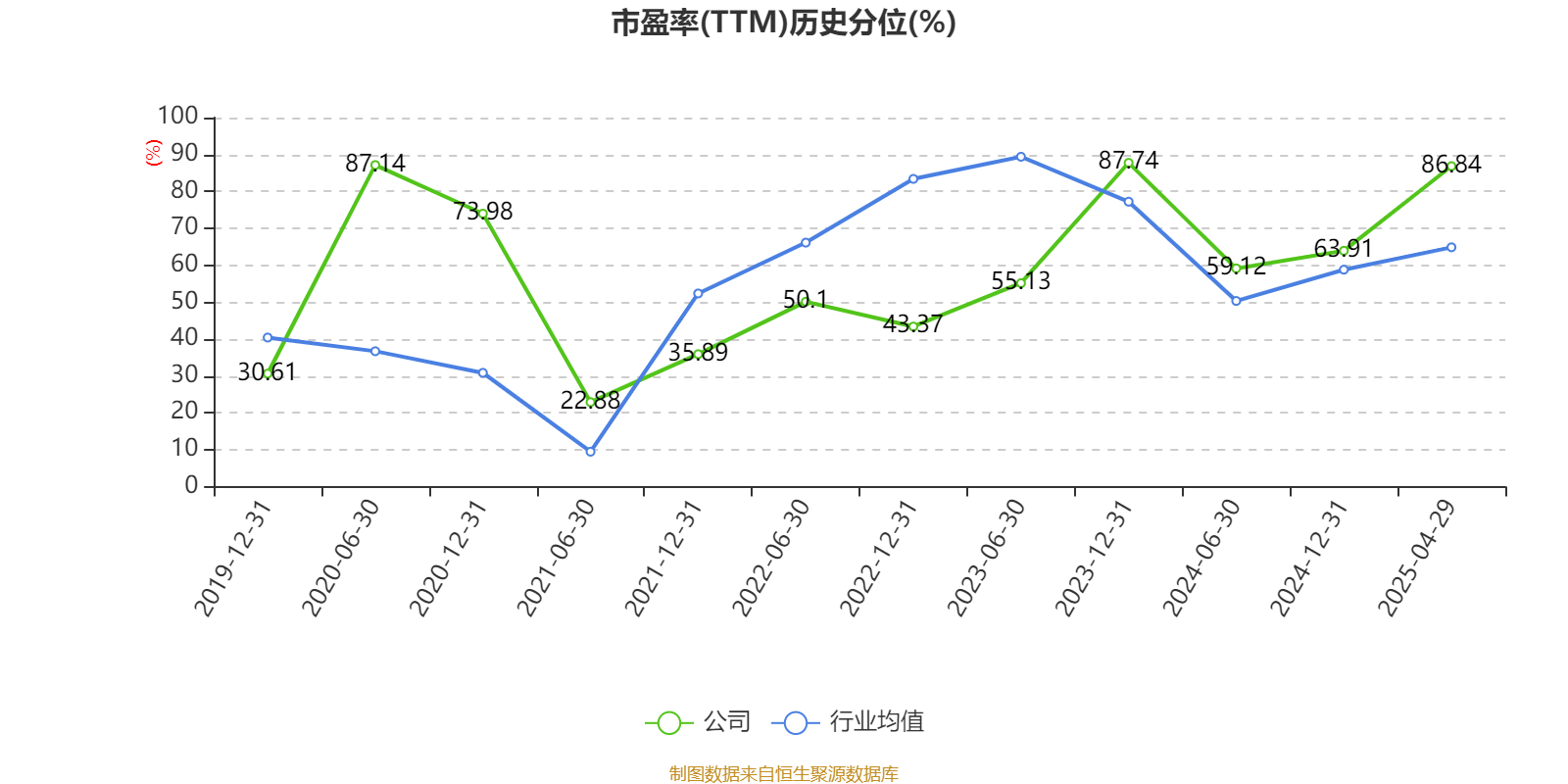 市盈率、市净率为负时,不显示当期分位数,会导致折线图中断。