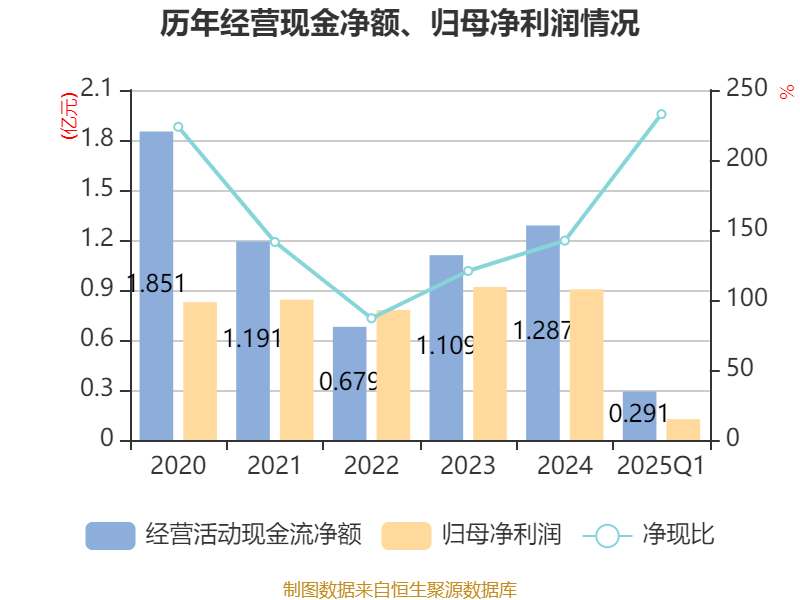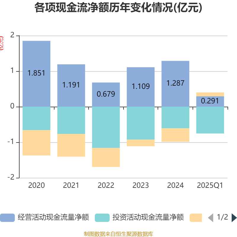 截至2025年一季度末,公司经营活动现金流净额为2914.86万元,同比增长144.82%;筹资活动现金流净额1092.15万元,同比减少5138.33万元;投资活动现金流净额-7548.63万元,上年同期为-4497.69万元。