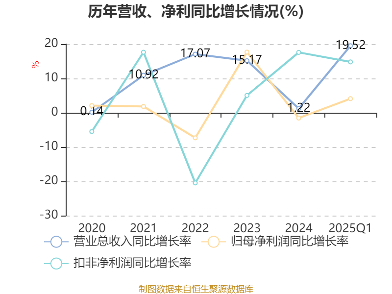 负债重大变化方面,截至2025年一季度末,公司短期借款较上年末增加15.12%,占公司总资产比重上升0.71个百分点;应付职工薪酬较上年末减少61.51%,占公司总资产比重下降0.44个百分点;其他应付款(含利息和股利)较上年末减少21.96%,占公司总资产比重下降0.44个百分点;应付票据及应付账款较上年末增加4.73%,占公司总资产比重上升0.33个百分点。