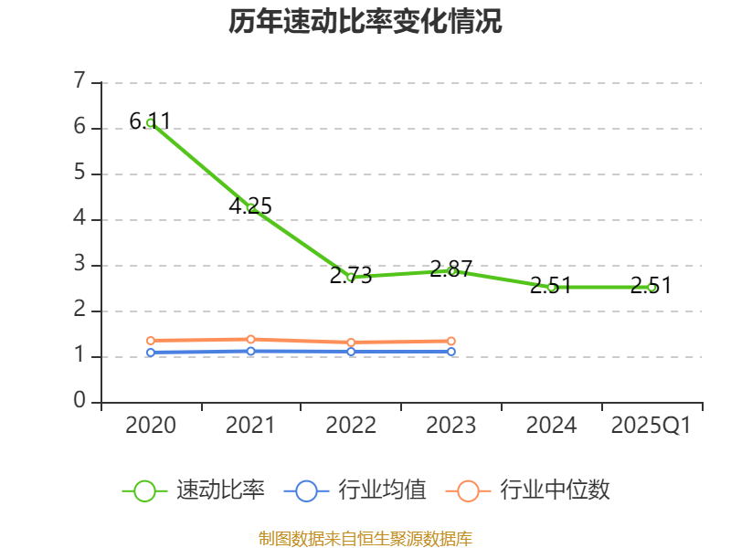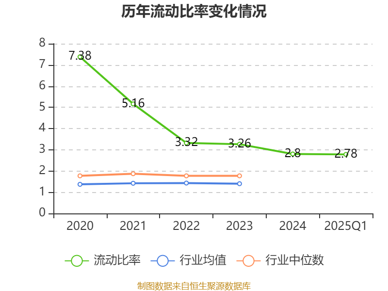 2025年第一季度,公司流动比率为2.78,速动比率为2.51。