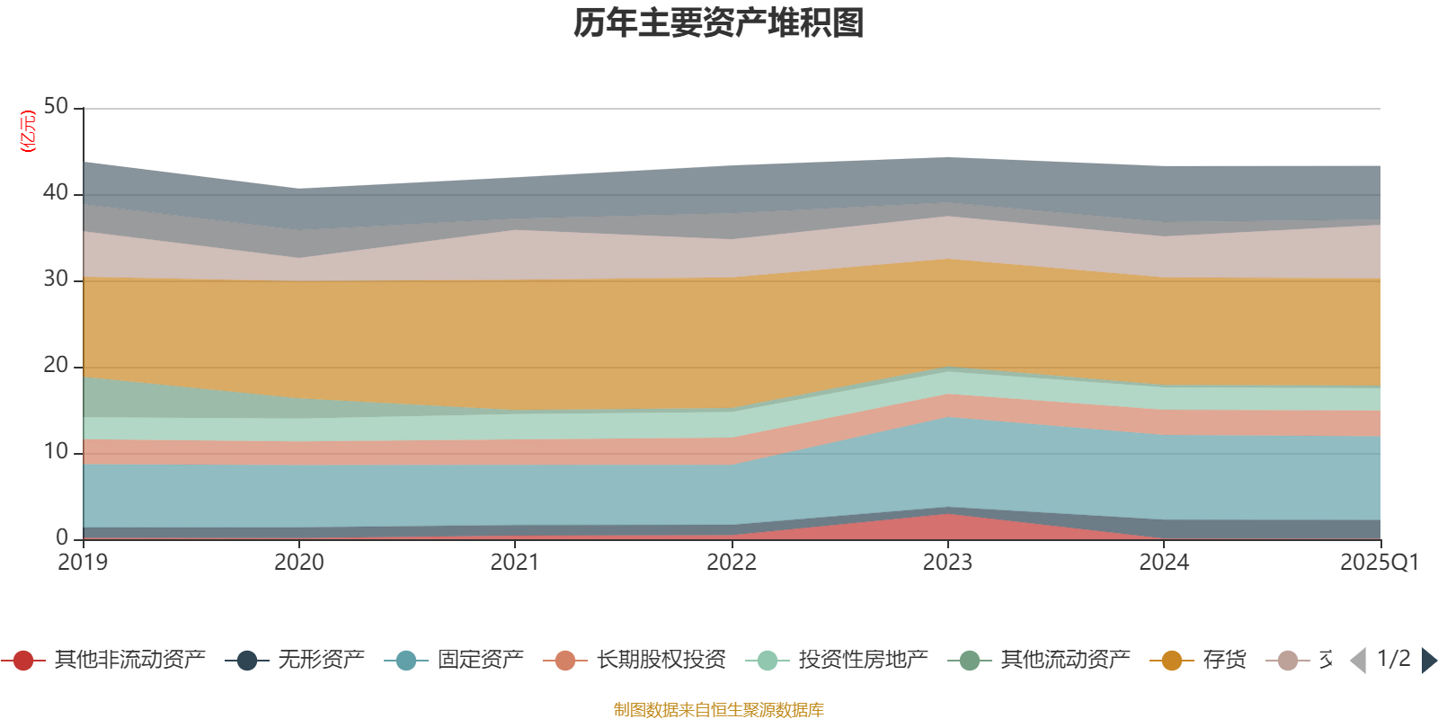 资产重大变化方面,截至2025年一季度末,公司交易性金融资产合计较上年末增加29.64%,占公司总资产比重上升3.26个百分点;货币资金较上年末减少62.31%,占公司总资产比重下降2.41个百分点;应收票据及应收账款较上年末减少14.89%,占公司总资产比重下降0.63个百分点;固定资产较上年末减少1.21%,占公司总资产比重下降0.29个百分点。