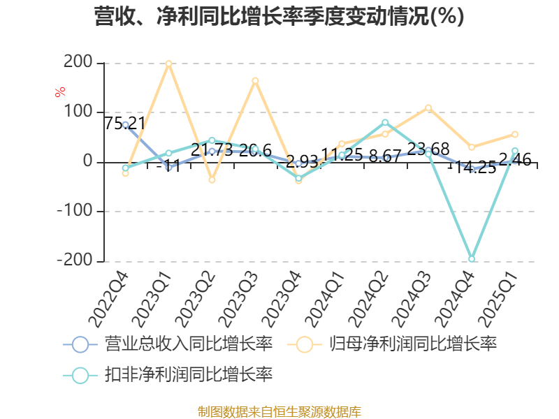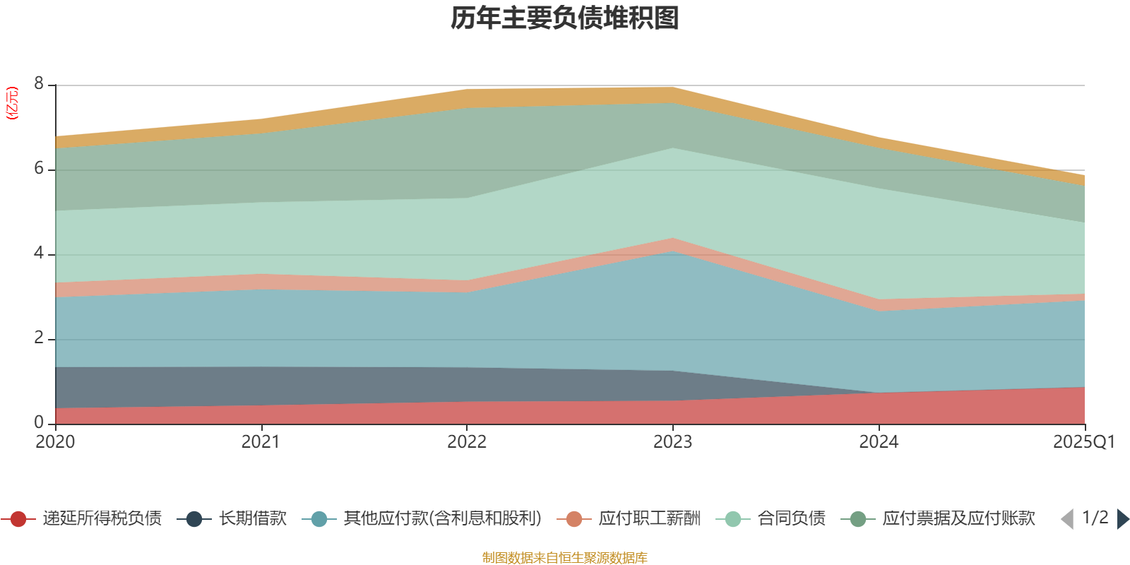 负债重大变化方面,截至2025年一季度末,公司合同负债较上年末减少35.83%,占公司总资产比重下降2.17个百分点;递延所得税负债较上年末增加18.49%,占公司总资产比重上升0.31个百分点;应付职工薪酬较上年末减少44.63%,占公司总资产比重下降0.29个百分点;其他应付款(含利息和股利)较上年末增加6.26%,占公司总资产比重上升0.28个百分点。