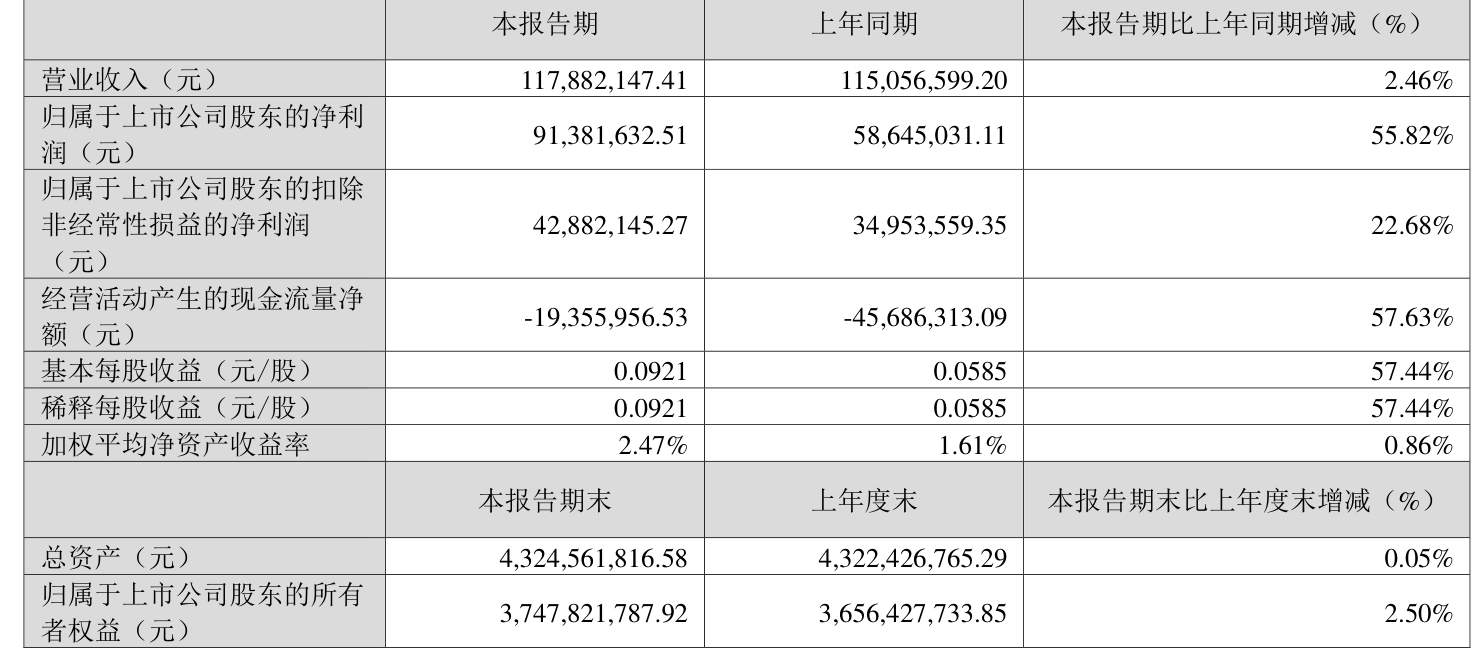 中证智能财讯国脉科技(002093)4月30日披露2025年第一季度报告。公司实现营业总收入1.18亿元,同比增长2.46%;归母净利润9138.16万元,同比增长55.82%;扣非净利润4288.21万元,同比增长22.68%;经营活动产生的现金流量净额为-1935.6万元,上年同期为-4568.63万元;报告期内,国脉科技基本每股收益为0.0921元,加权平均净资产收益率为2.47%。