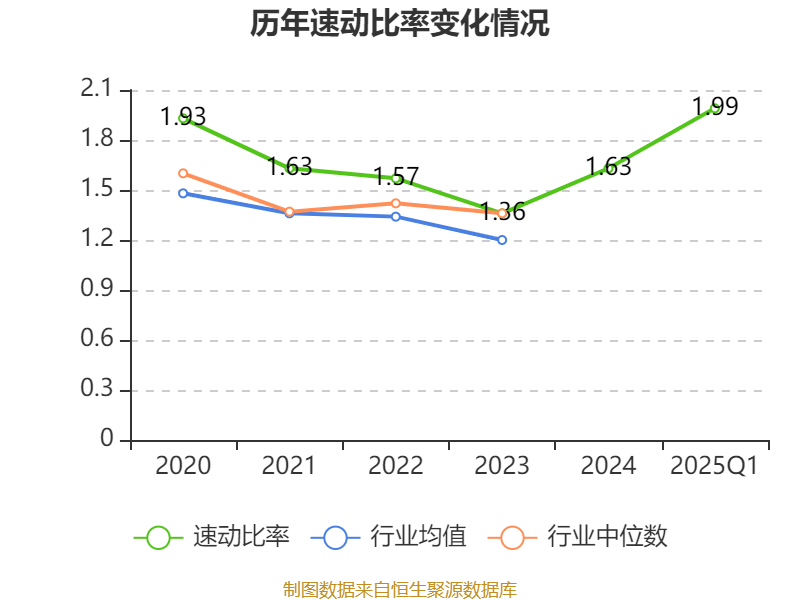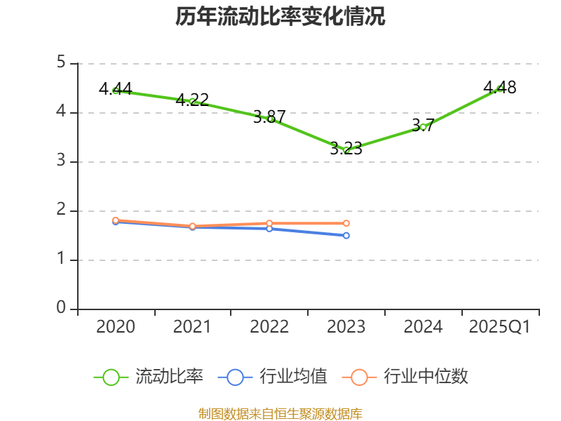 2025年第一季度,公司流动比率为4.48,速动比率为1.99。