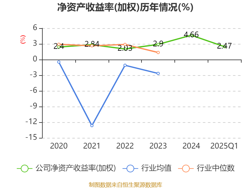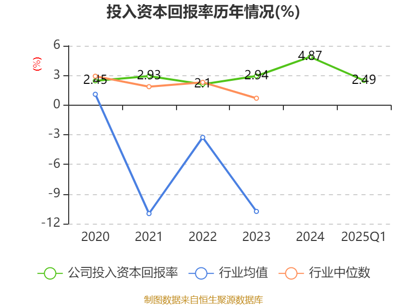 盈利能力方面, 2025年一季度公司加权平均净资产收益率为2.47%,同比上升0.86个百分点。公司2025年第一季度投入资本回报率为2.49%,较上年同期上升0.92个百分点。