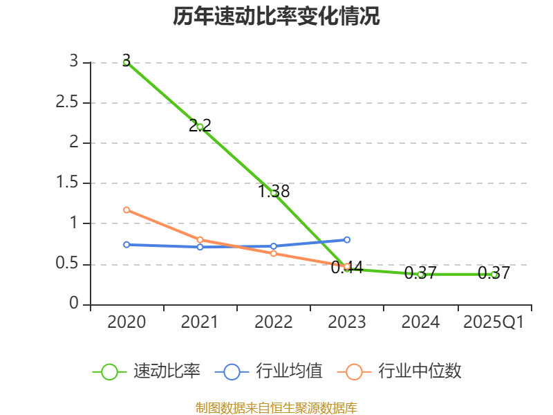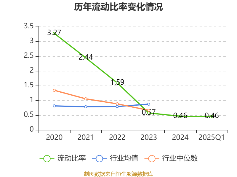 2025年第一季度,公司流动比率为0.46,速动比率为0.37。
