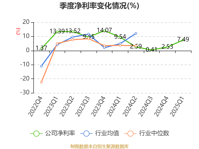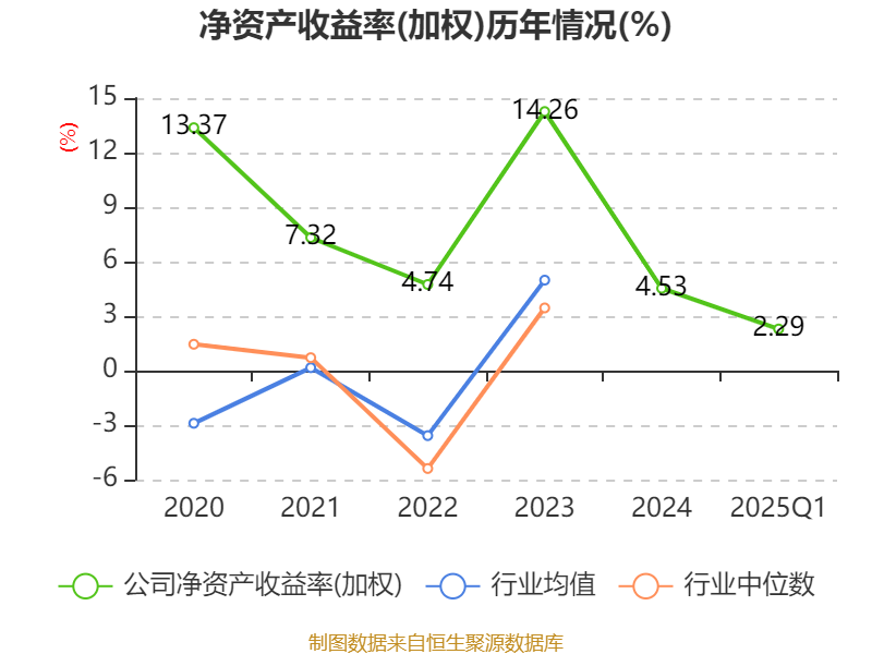 盈利能力方面, 2025年一季度公司加权平均净资产收益率为2.29%,同比下降0.61个百分点。公司2025年第一季度投入资本回报率为1.43%,较上年同期下降0.79个百分点。