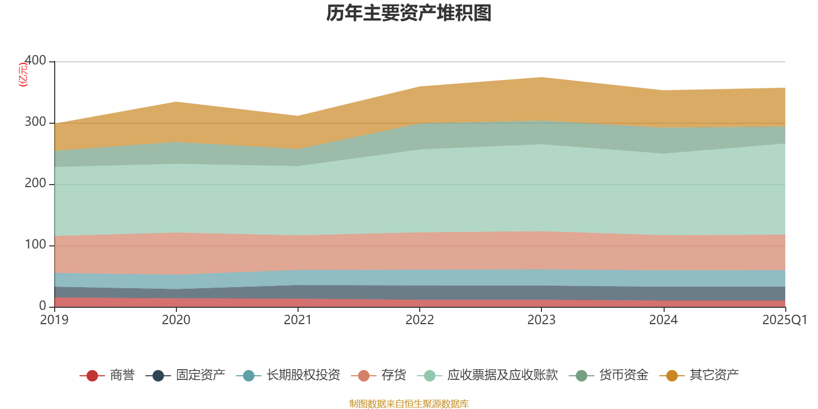 资产重大变化方面,截至2025年一季度末,公司货币资金较上年末减少34.28%,占公司总资产比重下降4.19个百分点;应收票据及应收账款较上年末增加11.63%,占公司总资产比重上升3.9个百分点;预付款项较上年末增加46.45%,占公司总资产比重上升0.92个百分点;应收款项融资较上年末减少39.52%,占公司总资产比重下降0.44个百分点。