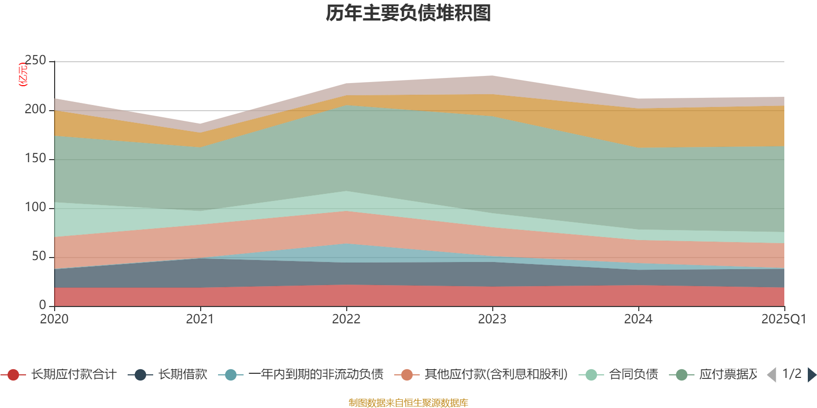 负债重大变化方面,截至2025年一季度末,公司一年内到期的非流动负债较上年末减少86.67%,占公司总资产比重下降1.72个百分点;长期借款较上年末增加21.95%,占公司总资产比重上升0.9个百分点;应付票据及应付账款较上年末增加4.97%,占公司总资产比重上升0.89个百分点;长期应付款合计较上年末减少11.12%,占公司总资产比重下降0.73个百分点。