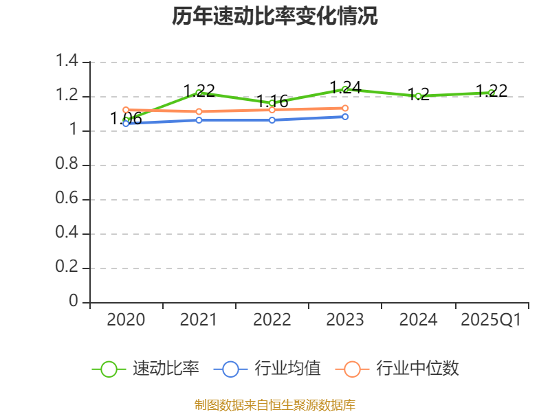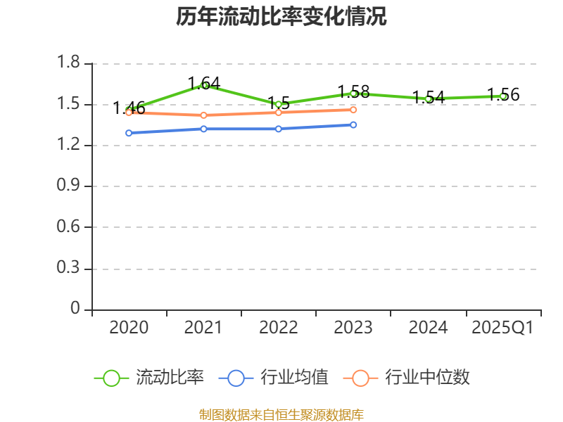 2025年第一季度,公司流动比率为1.56,速动比率为1.22。