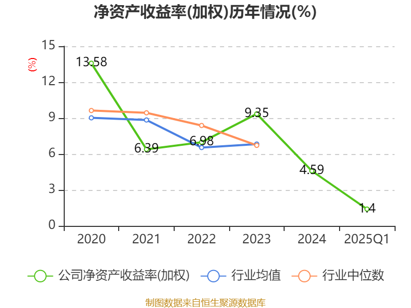 盈利能力方面, 2025年一季度公司加权平均净资产收益率为1.4%,同比上升0.06个百分点。公司2025年第一季度投入资本回报率为1.18%,较上年同期上升0.06个百分点。