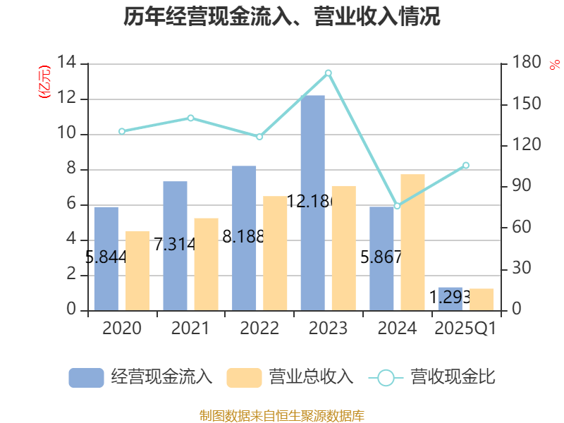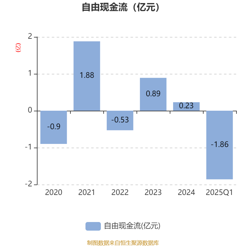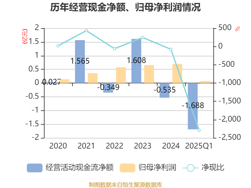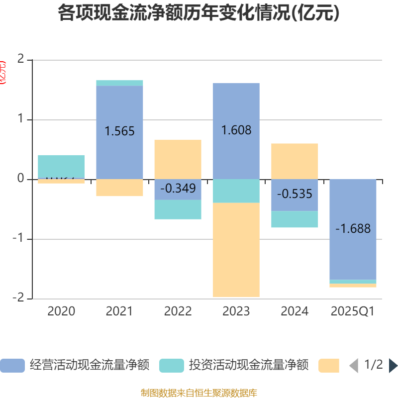 截至2025年一季度末,公司经营活动现金流净额为-1.69亿元,同比减少9795.1万元;筹资活动现金流净额-607.63万元,同比减少1083.62万元;投资活动现金流净额-637.03万元,上年同期为-954.45万元。