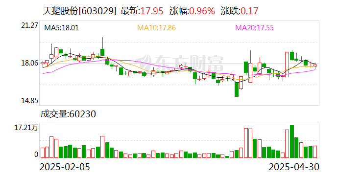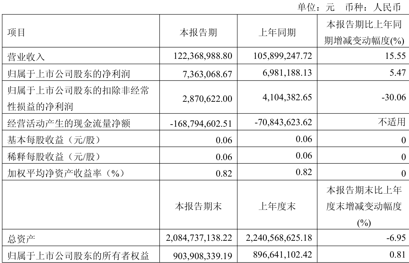 中证智能财讯天鹅股份(603029)4月30日披露2025年第一季度报告。公司实现营业总收入1.22亿元,同比增长15.55%;归母净利润736.31万元,同比增长5.47%;扣非净利润287.06万元,同比下降30.06%;经营活动产生的现金流量净额为-1.69亿元,上年同期为-7084.36万元;报告期内,天鹅股份基本每股收益为0.06元,加权平均净资产收益率为0.82%。