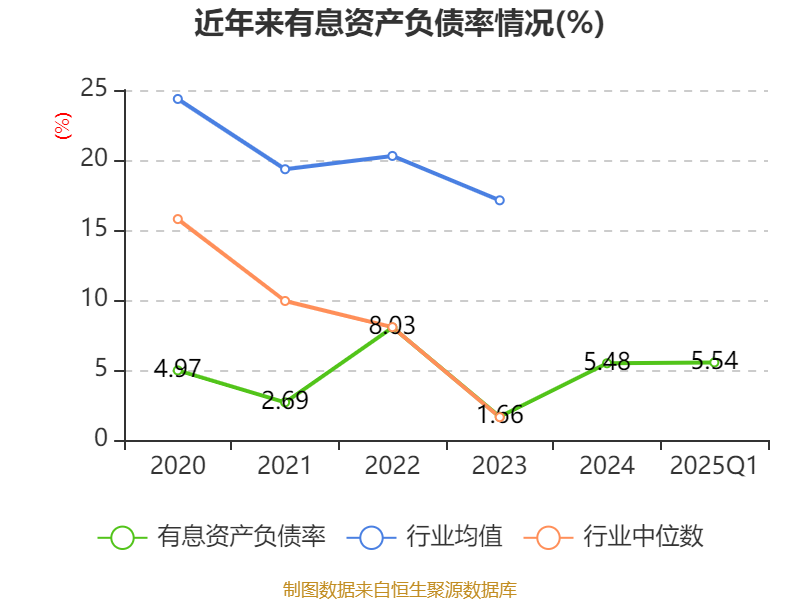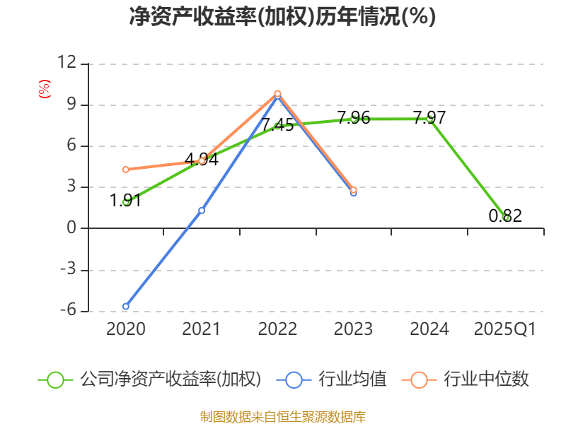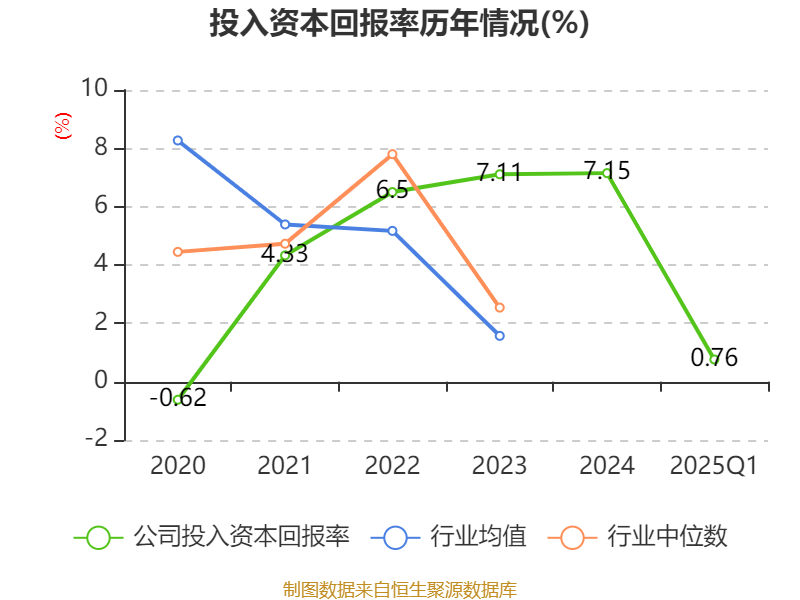 盈利能力方面, 2025年一季度公司加权平均净资产收益率为0.82%,同比持平。公司2025年第一季度投入资本回报率为0.76%,较上年同期上升0.05个百分点。