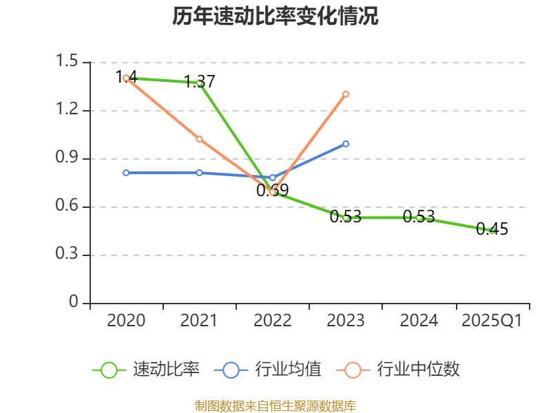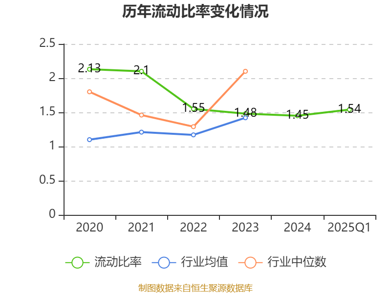 2025年第一季度,公司流动比率为1.54,速动比率为0.45。