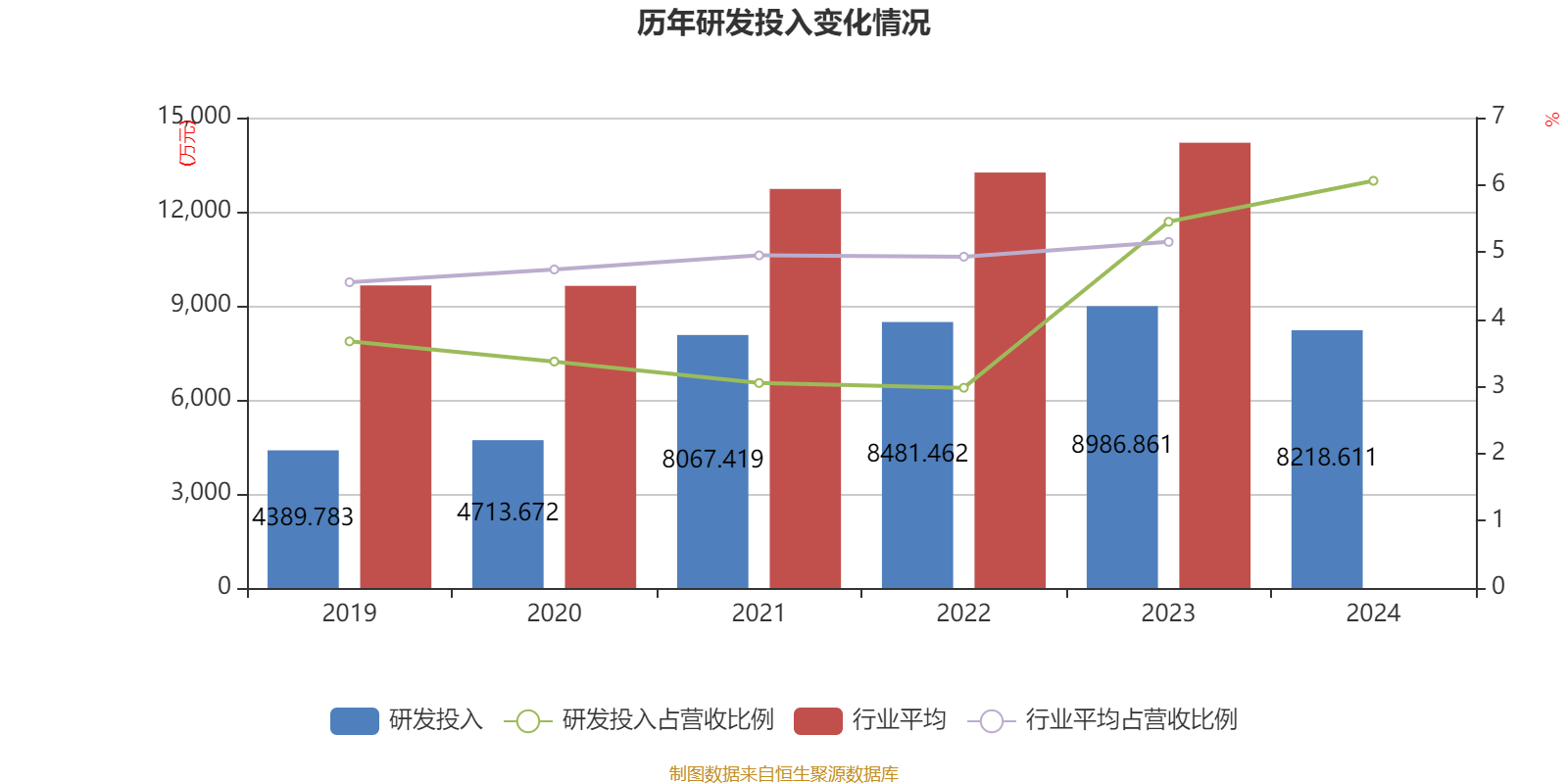 2024年全年,公司研发投入金额为8218.61万元,同比下降8.55%;研发投入占营业收入比例为6.06%,相比上年同期上升0.61个百分点。此外,公司全年研发投入资本化率为0%。