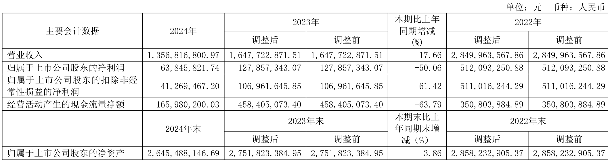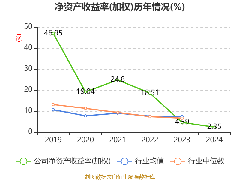 数据显示,2024年公司加权平均净资产收益率为2.35%,较上年同期下降2.24个百分点。公司2024年投入资本回报率为1.79%,较上年同期下降1.75个百分点。