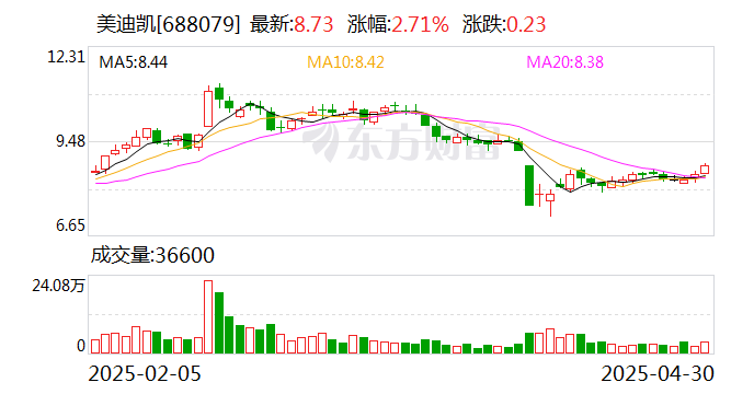 年报显示,2024年末的公司十大流通股东中,持股最多的为杭州美迪凯自有资金投资合伙企业(有限合伙),占比40.615%。在具体持股比例上,杭州美迪凯自有资金投资合伙企业(有限合伙)、香港豐盛佳美(國際)投資有限公司、美迪凯控股集团有限公司、杭州倍增自有资金投资合伙企业(有限合伙)、粤莞先进制造产业(东莞)股权投资基金(有限合伙)、杭州增量自有资金投资合伙企业(有限合伙)、杭州增盈自有资金投资合伙企业(有限合伙)、海宁美迪凯企业管理咨询合伙企业(有限合伙)、珠海成同股权投资基金合伙企业(有限合伙)、章利妹持股有所下降。