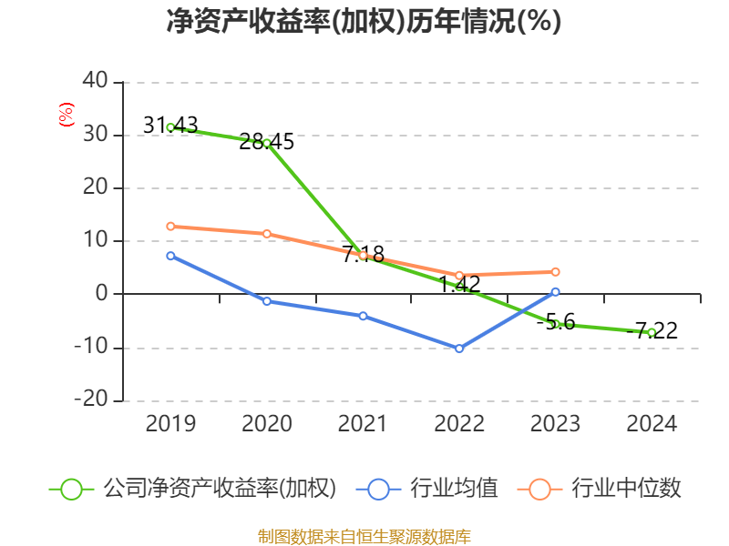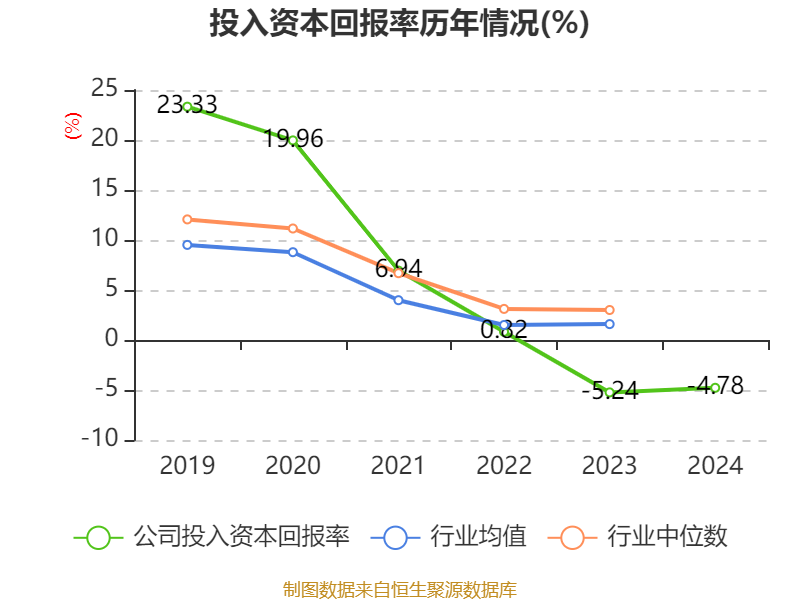 数据显示,2024年公司加权平均净资产收益率为-7.22%,较上年同期下降1.62个百分点。公司2024年投入资本回报率为-4.78%,较上年同期上升0.46个百分点。
