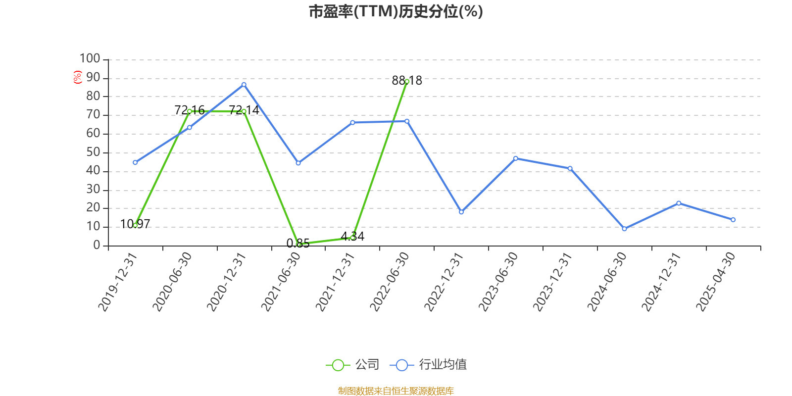 市盈率、市净率为负时,不显示当期分位数,会导致折线图中断。