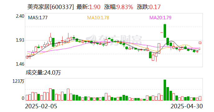 值得注意的是,中登公司数据显示,截至2025年4月25日,美克家居33.99%股份处于质押状态。年报显示,第一大股东美克投资集团有限公司质押4.88亿股公司股份,占其全部持股的100%。